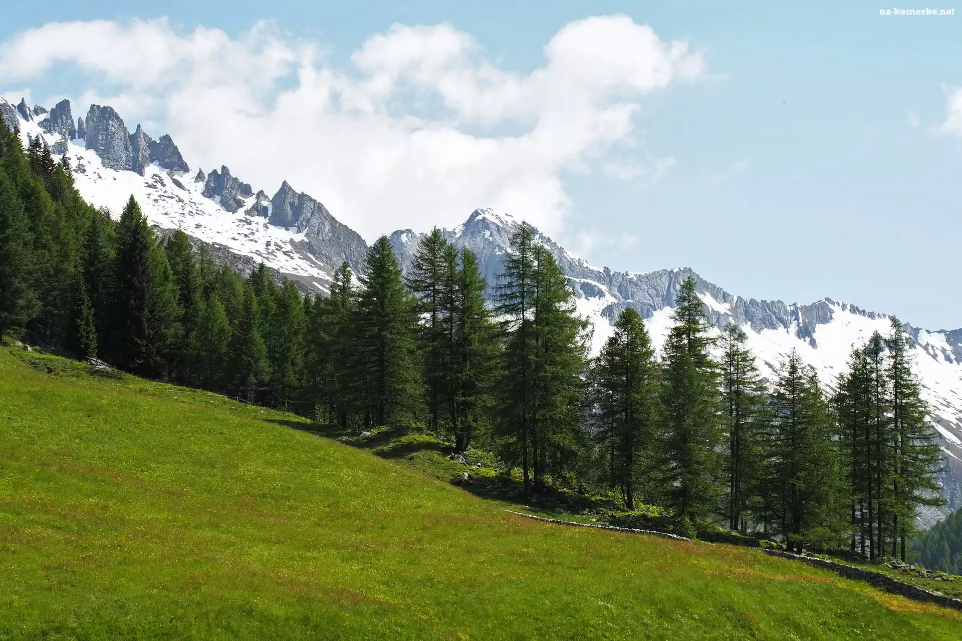 Drzewa, Łąka, Góry, Sosny na Komórkę