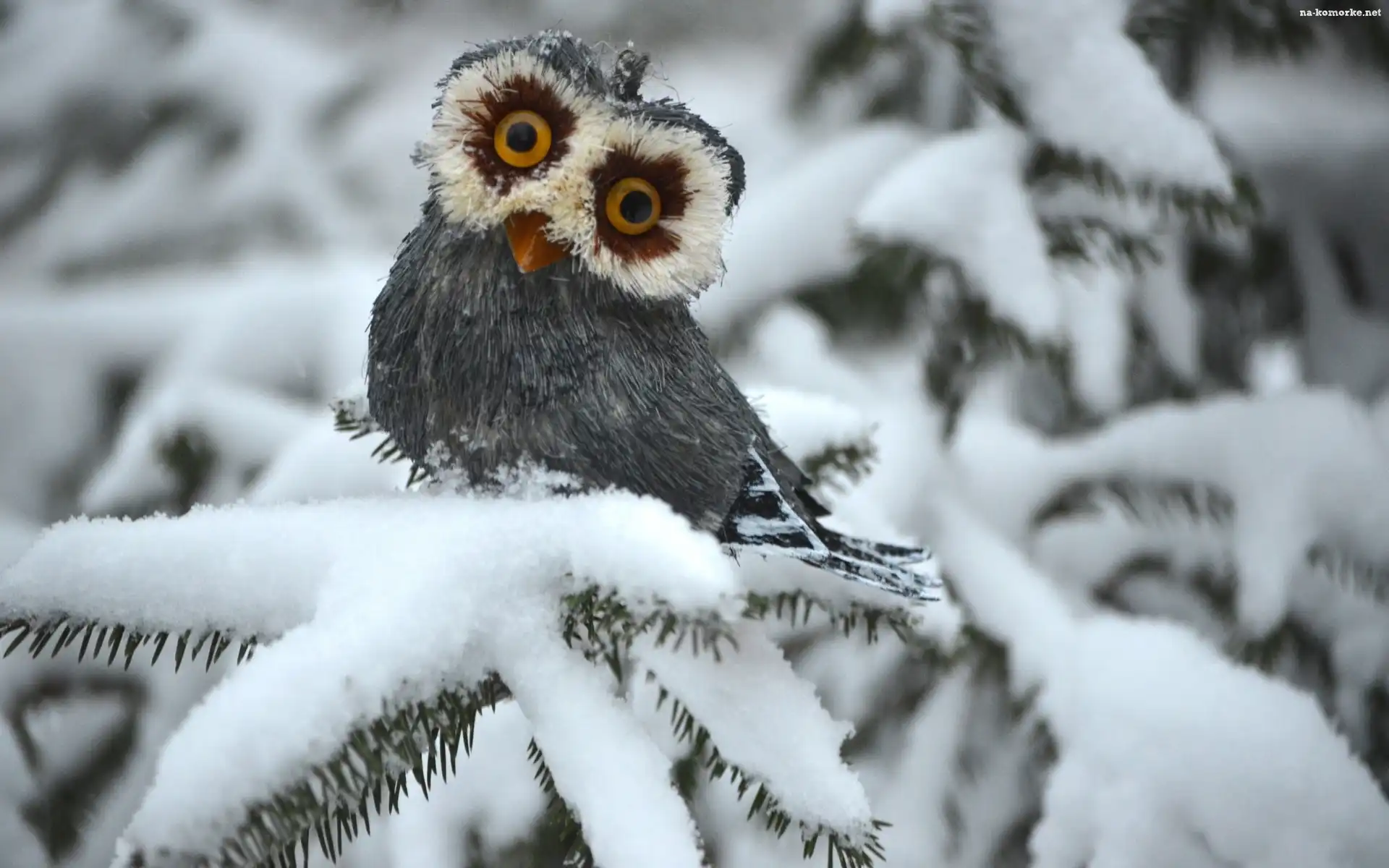 Sowa, Dekoracja, Gałązki, Zima na Komórkę