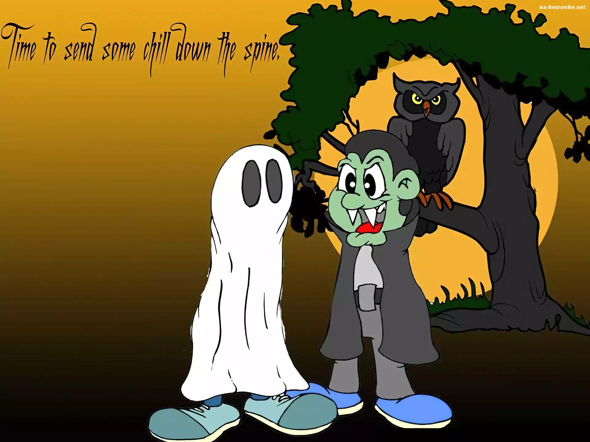 Halloween, sowa , drzewo na Komórkę