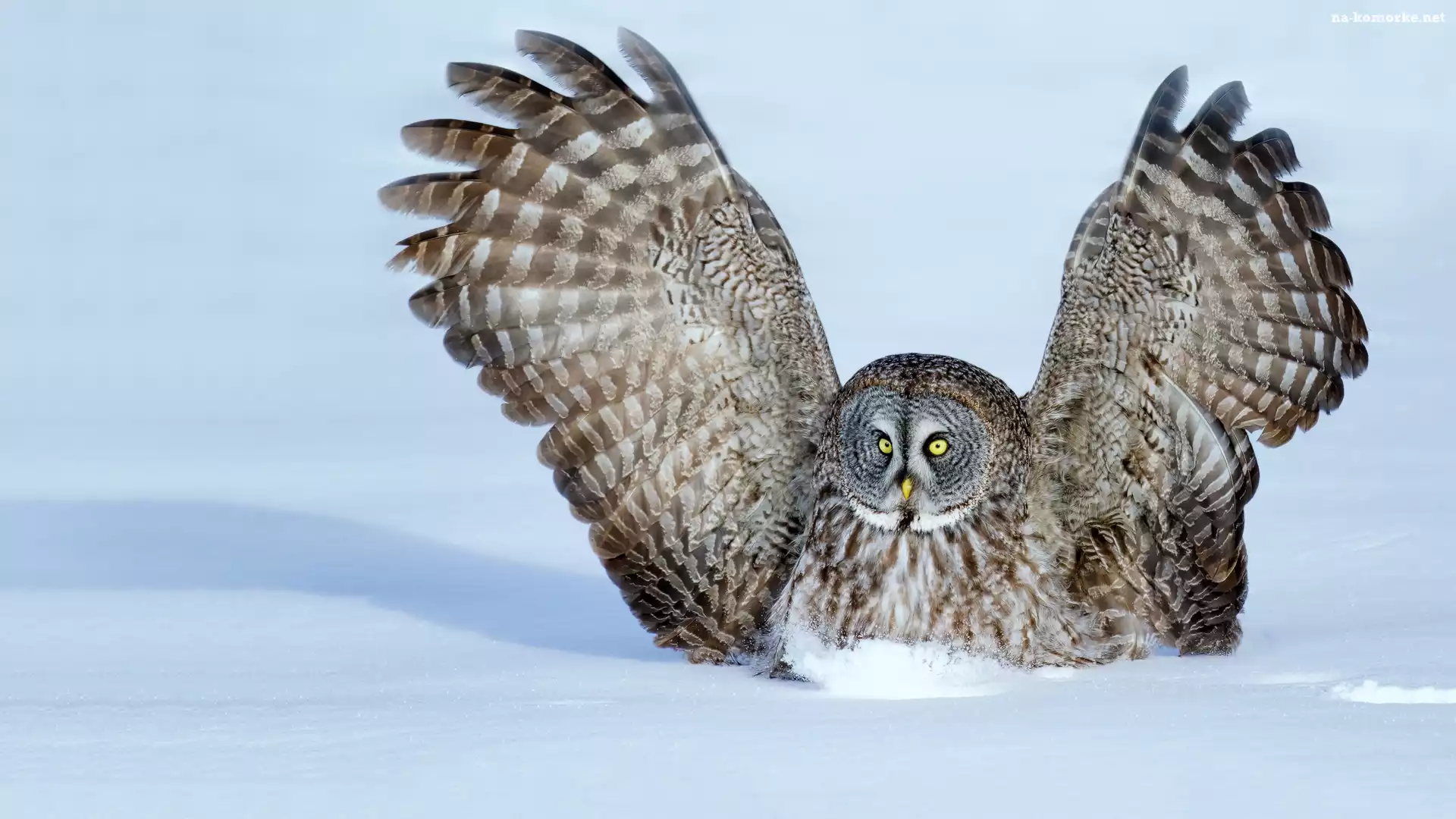 Rozpostarte, Sowa, Ptak, Śnieg, Puszczyk mszarny, Skrzydła na Komórkę