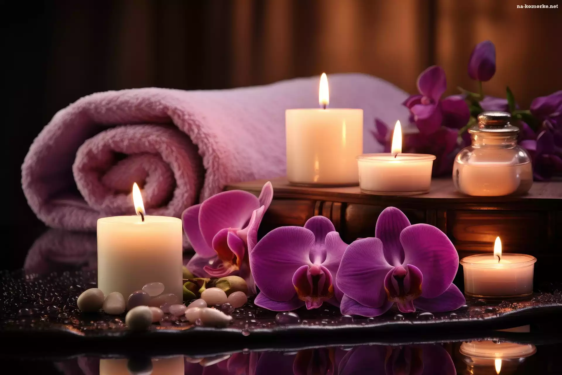 Relaks, Kwiaty, Ręcznik, SPA, Świece, Storczyk na Komórkę