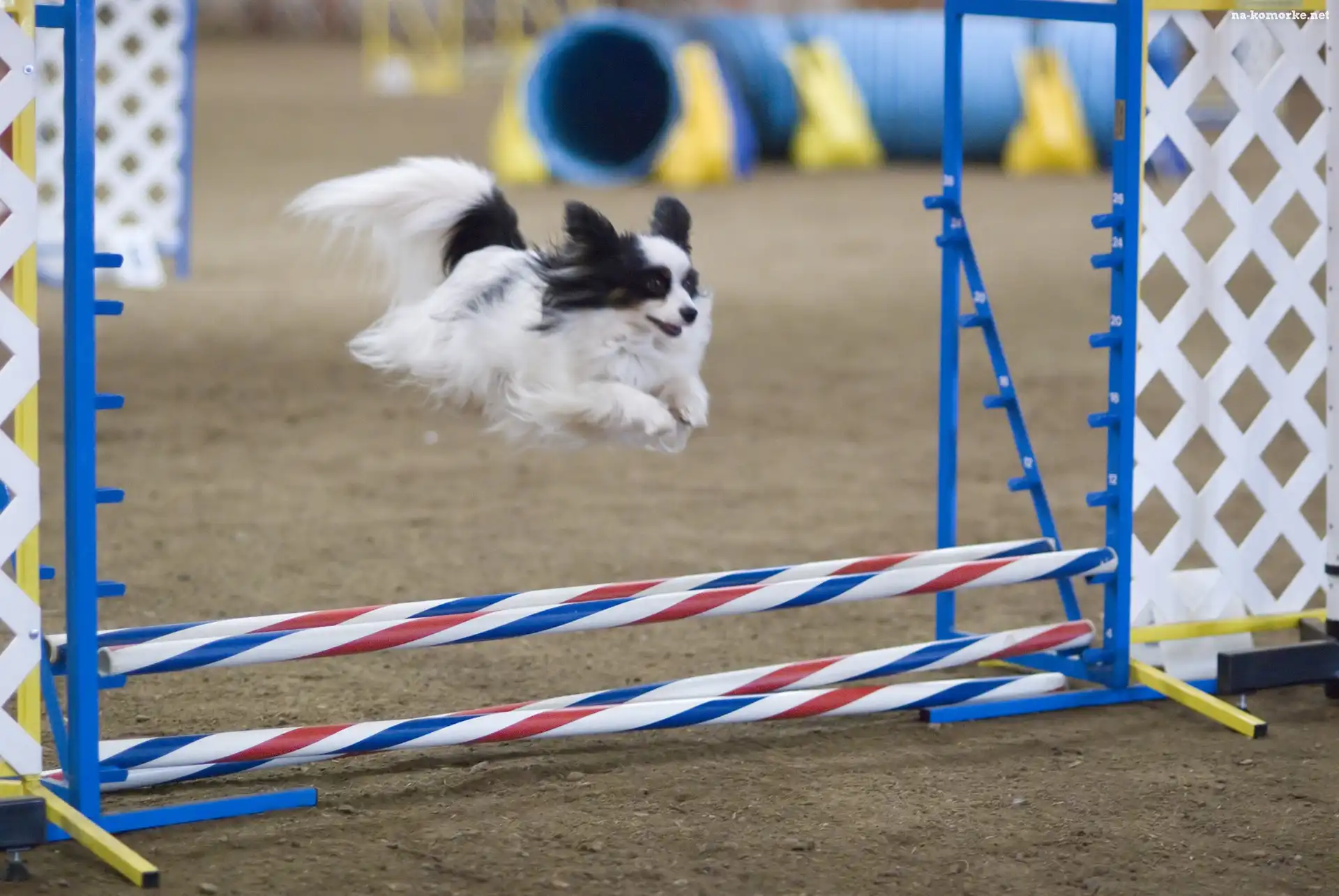 Spaniel kontynentalny miniaturowy Papillon, przeszkoda na Komórkę