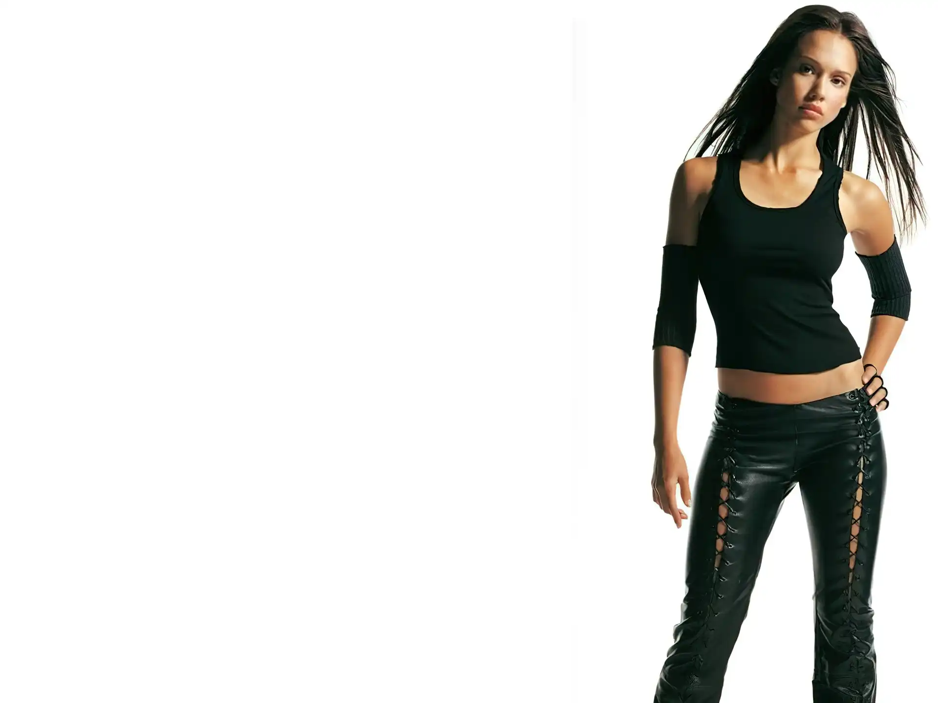 spodnie, Jessica Alba, czarne, skórzane, wiązane na Komórkę
