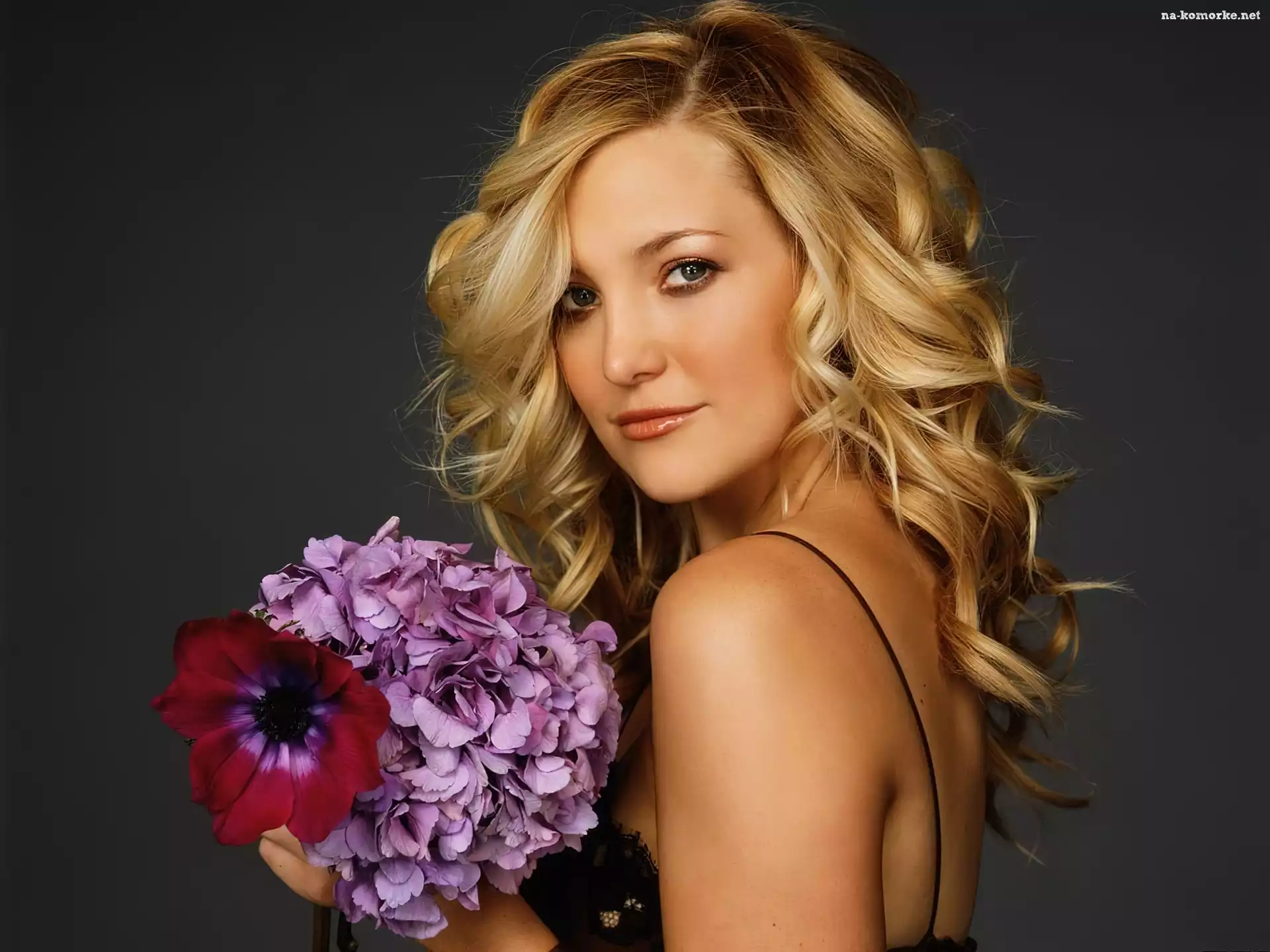 Blondynka, Spojrzenie, Kwiaty na Komórkę