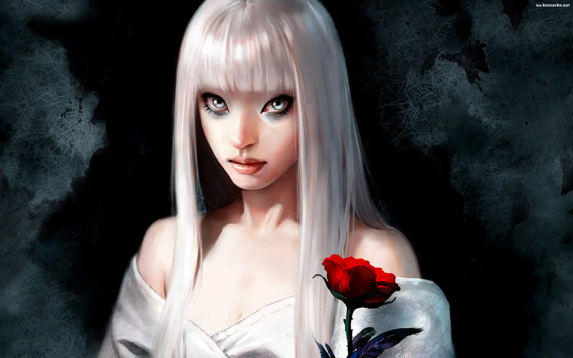 Dziewczyna, Spojrzenie, Róża na Komórkę