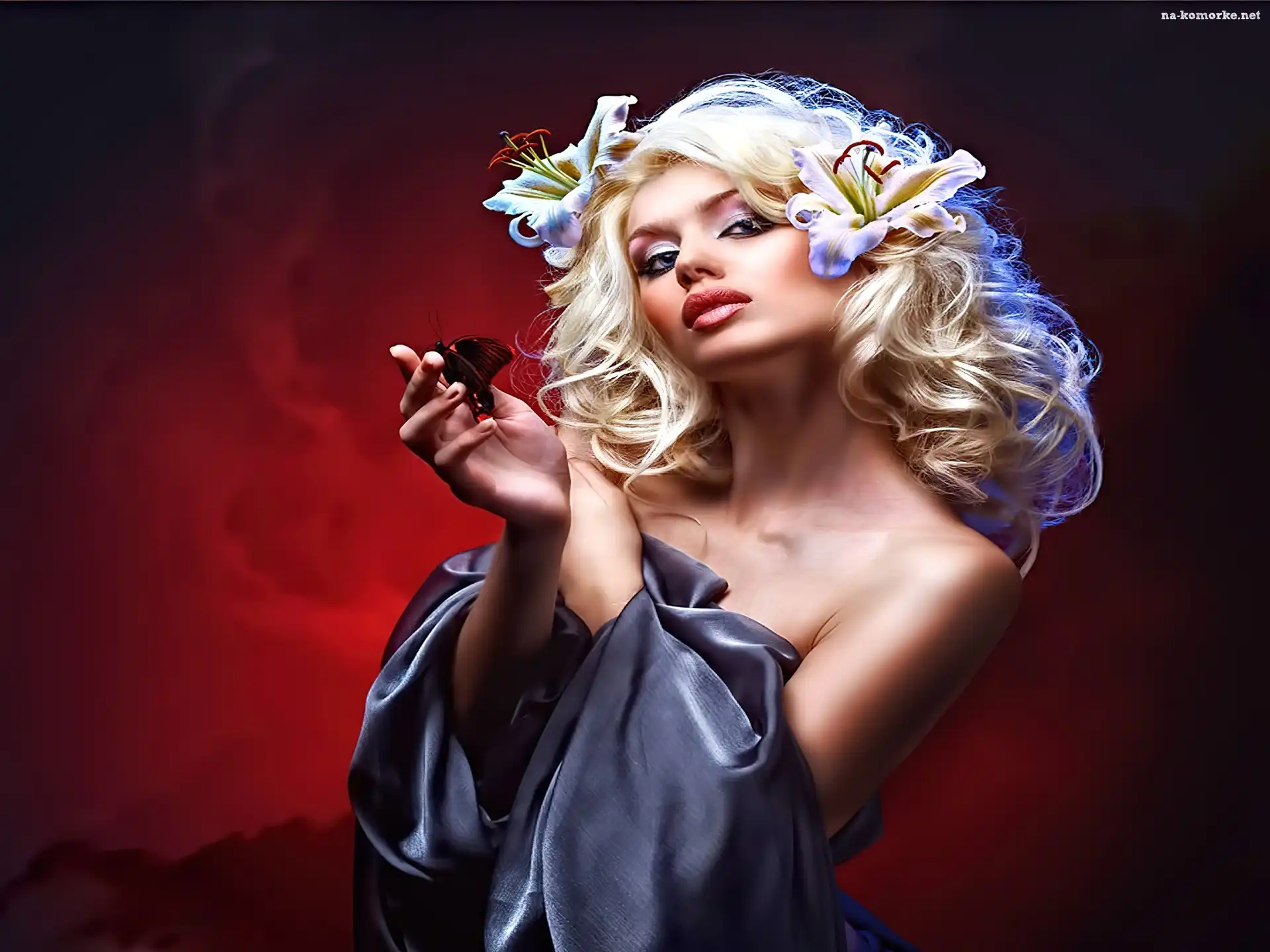 Kobieta, Spojrzenie, Motyl na Komórkę