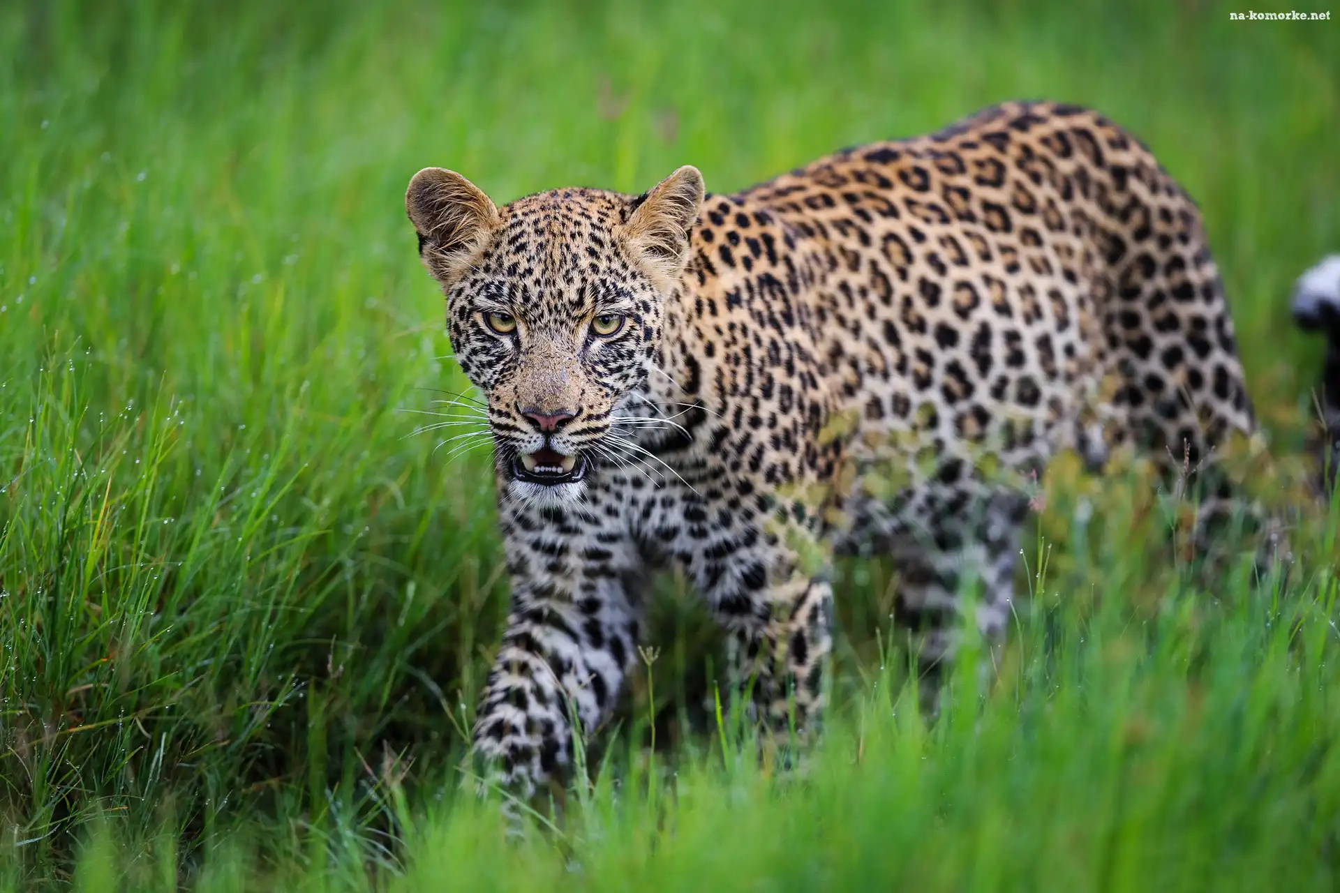 Spojrzenie, Dziki, Kot, Lampart, Trawa na Komórkę