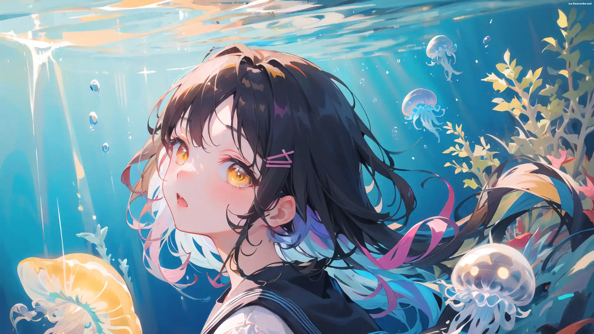Meduzy, Anime, Dziewczyna, Spojrzenie na Komórkę