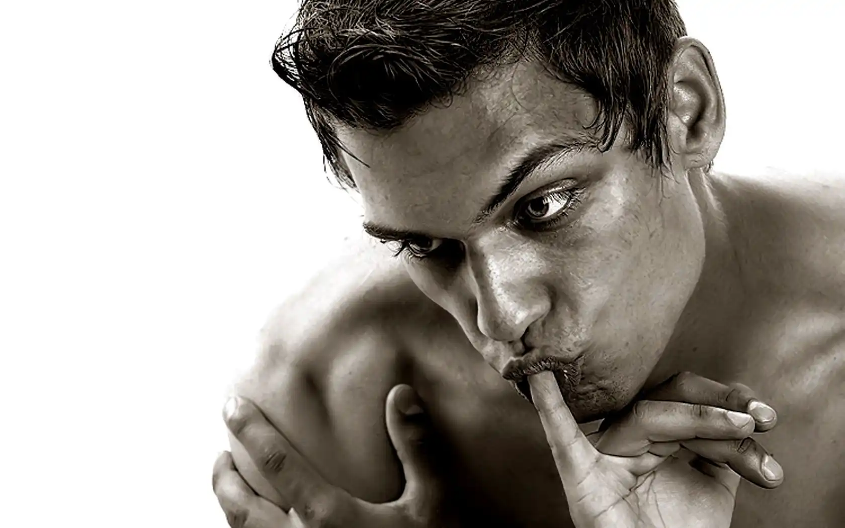 Mężczyzna, Ssący, Palec na Komórkę