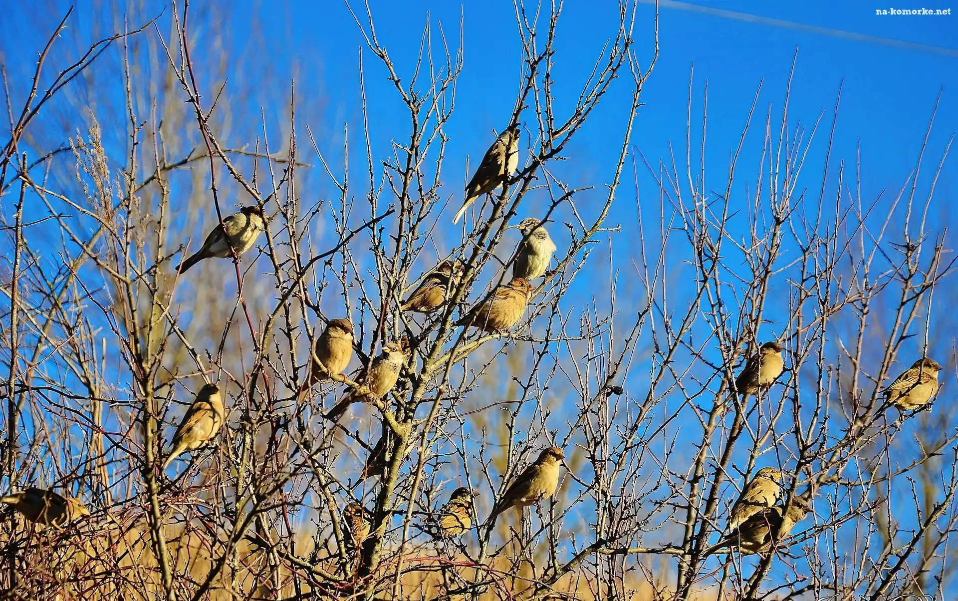 Wróble, Stado, Gałęzie na Komórkę