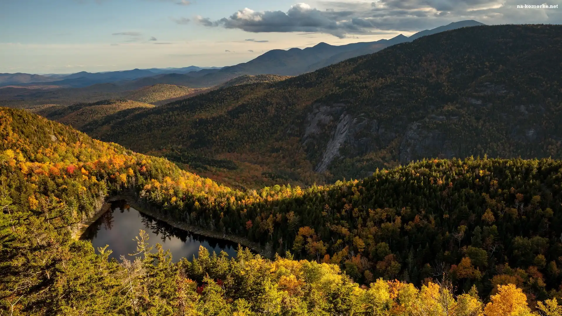 Stan Nowy Jork, Jesień, Lasy, Stany Zjednoczone, Jezioro, Góry Adirondack na Komórkę