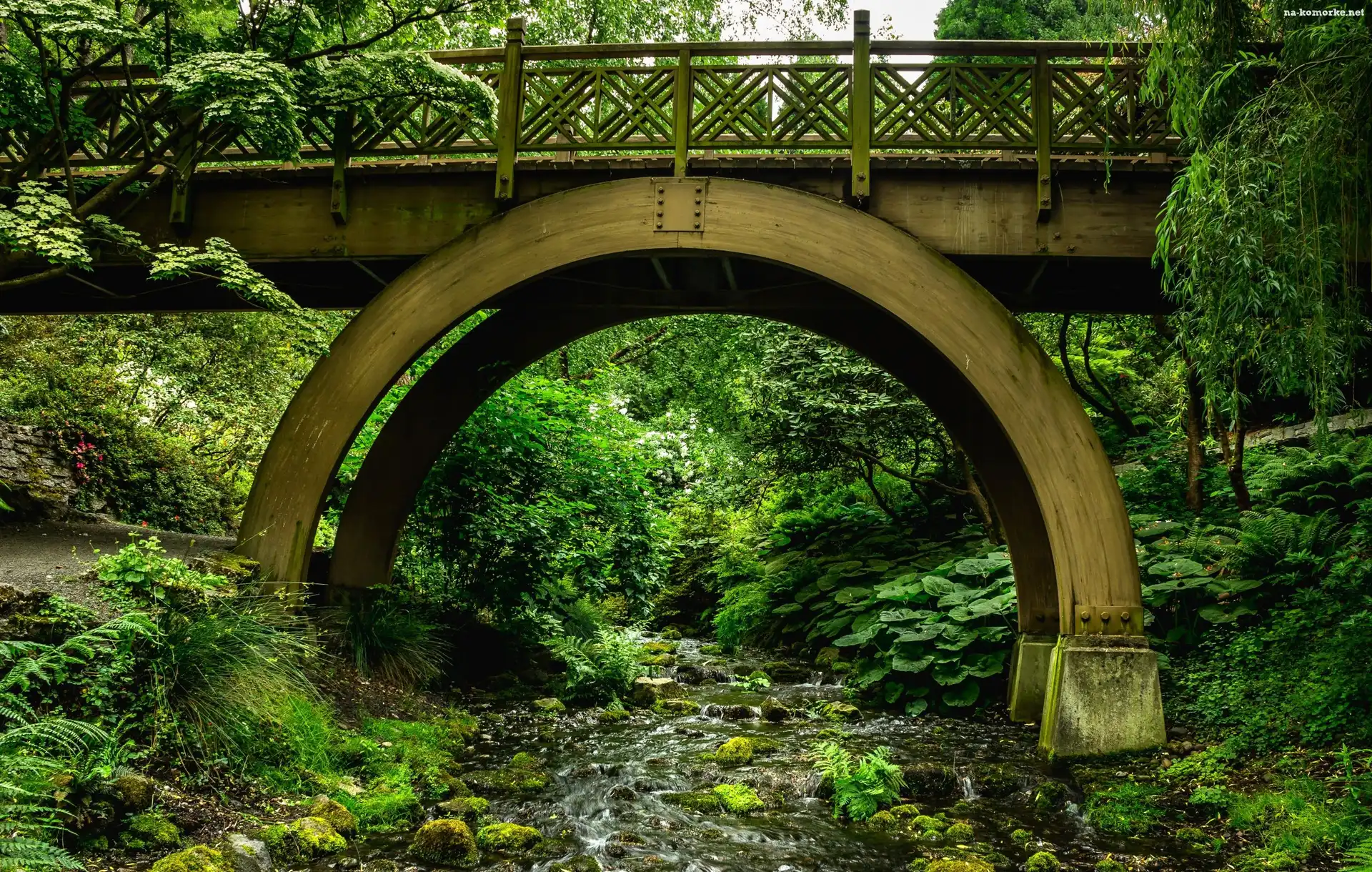 Stany, Strumień, Stan Oregon, Drzewa, Zjednoczone, Ogród Botaniczny Crystal Springs Rhododendron Gardens, Most drewniany, Rzeka na Komórkę |