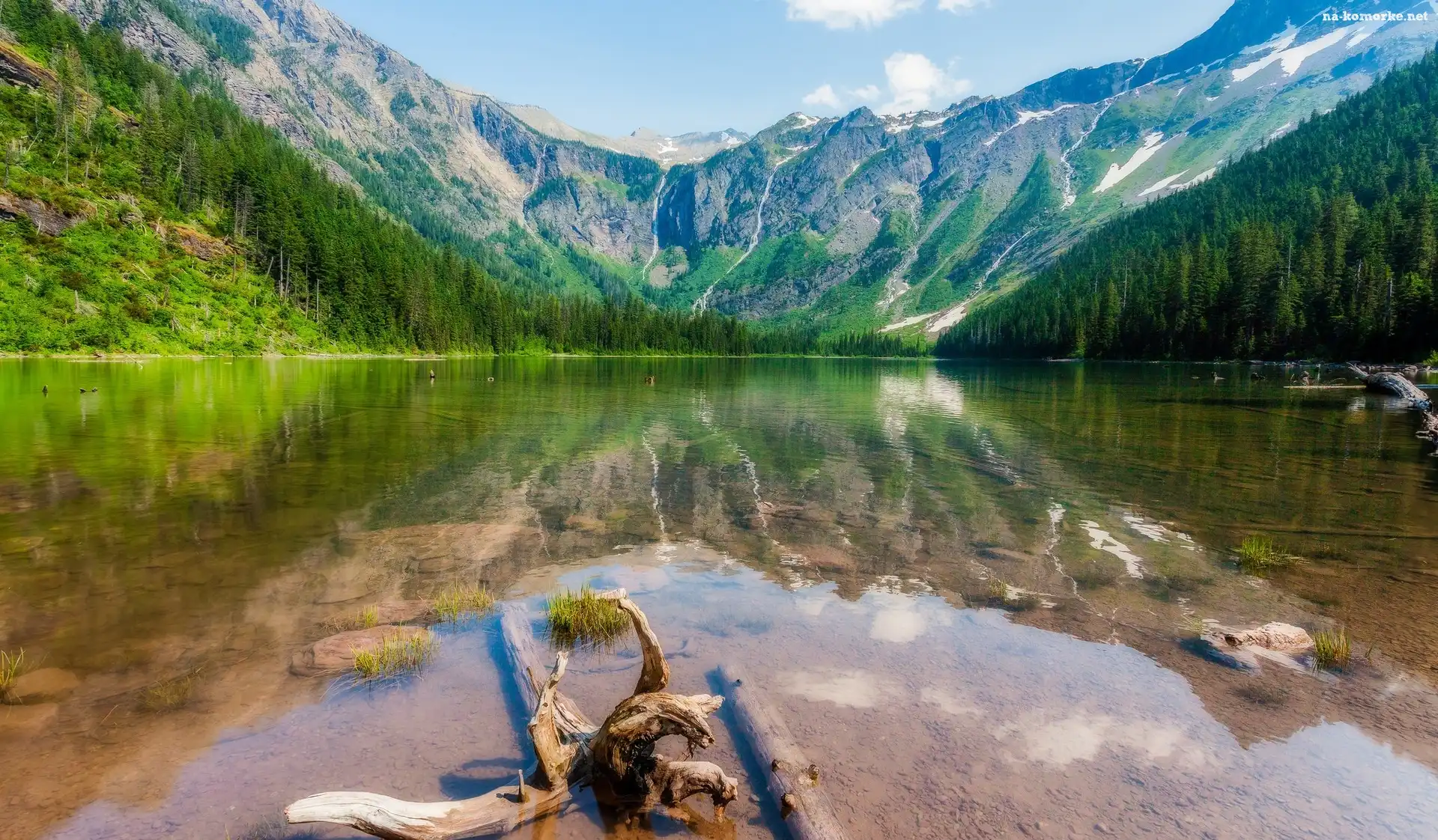 Jezioro Hidden Lake, Stan Montana, Stany Zjednoczone, Drzewa, Park Narodowy Glacier, Góry na Komórkę |