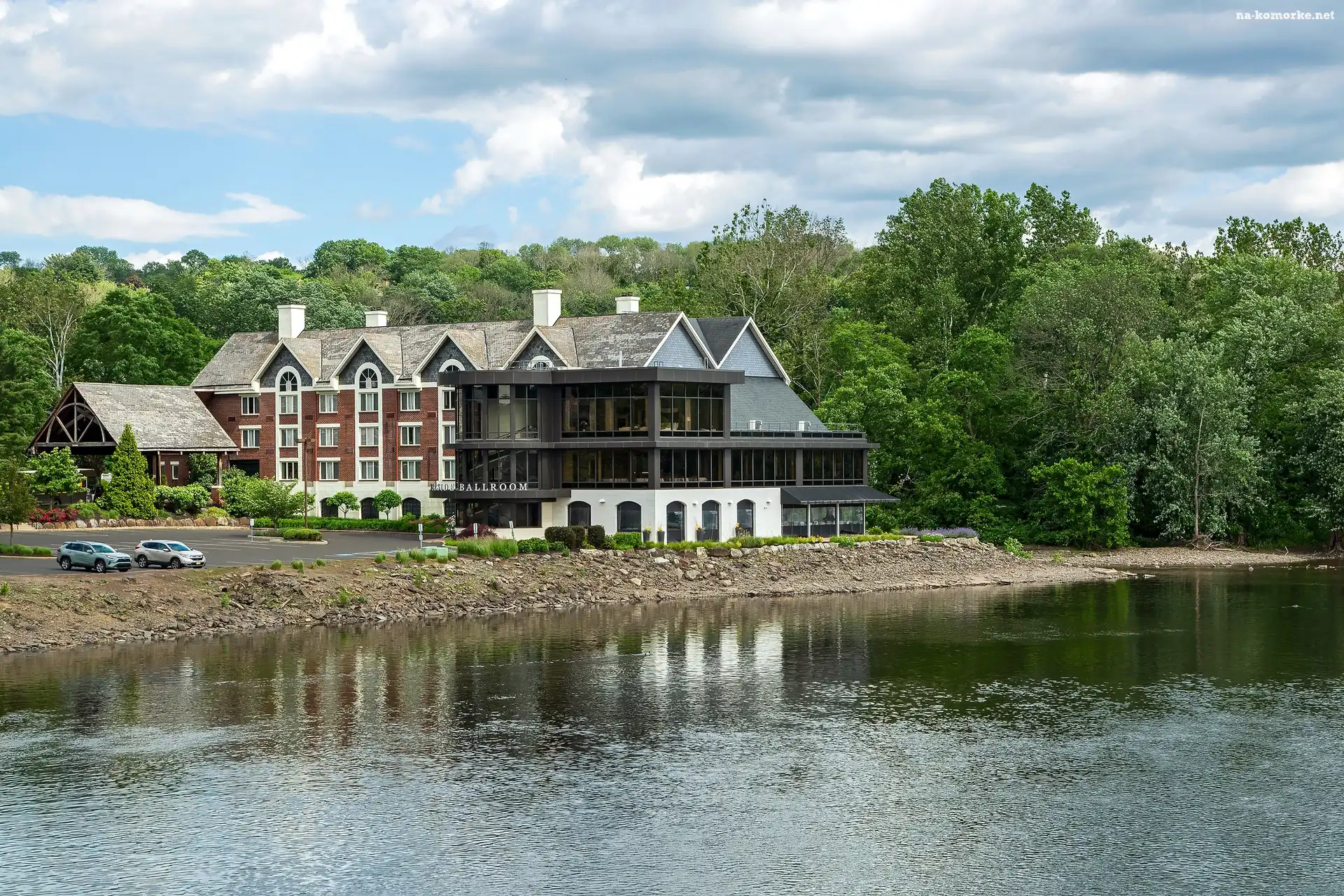 Restauracja, Stan Nowy Jork, Rzeka, Hotel, Delaware River, Stany Zjednoczone, Drzewa, Lambertville Station Restaurant na Komórkę |