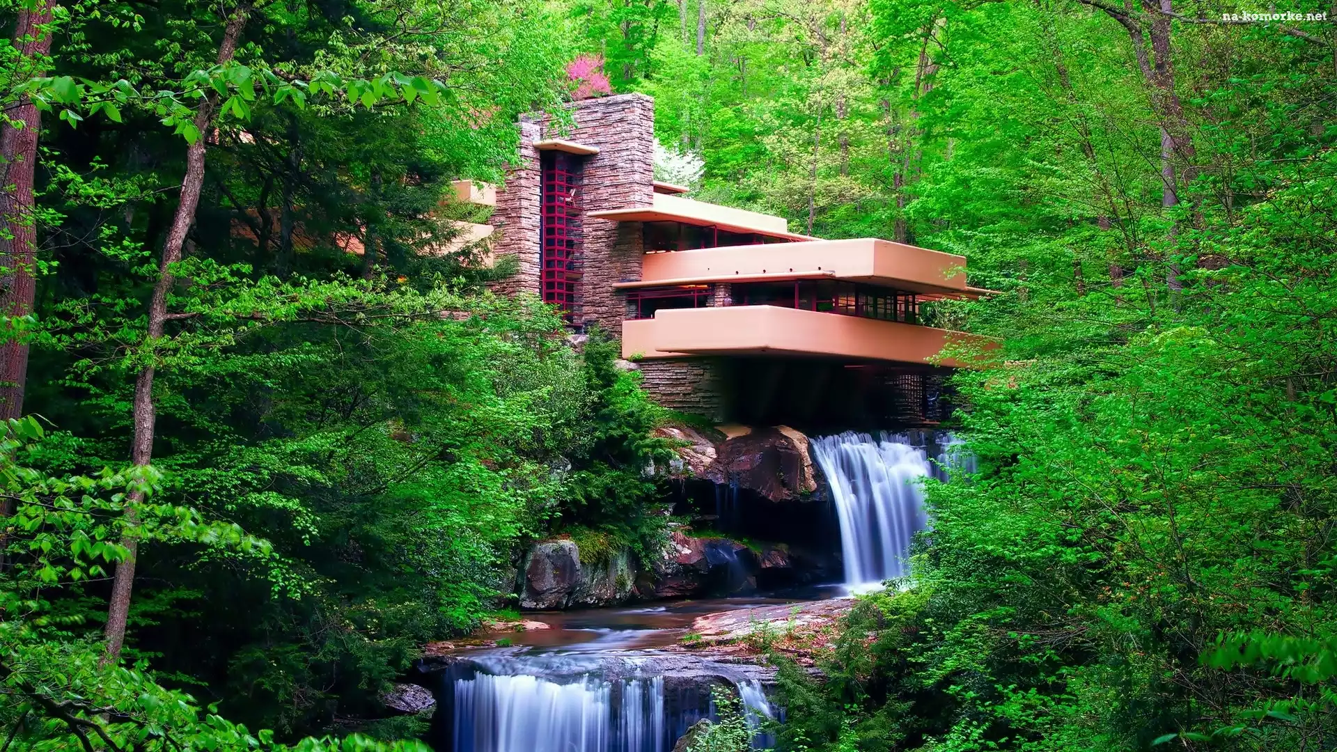 Fallingwater, Dom, Wright, Frank, Pensylwania, Wodospad, Zjednoczone, Lloyd, Stany na Komórkę
