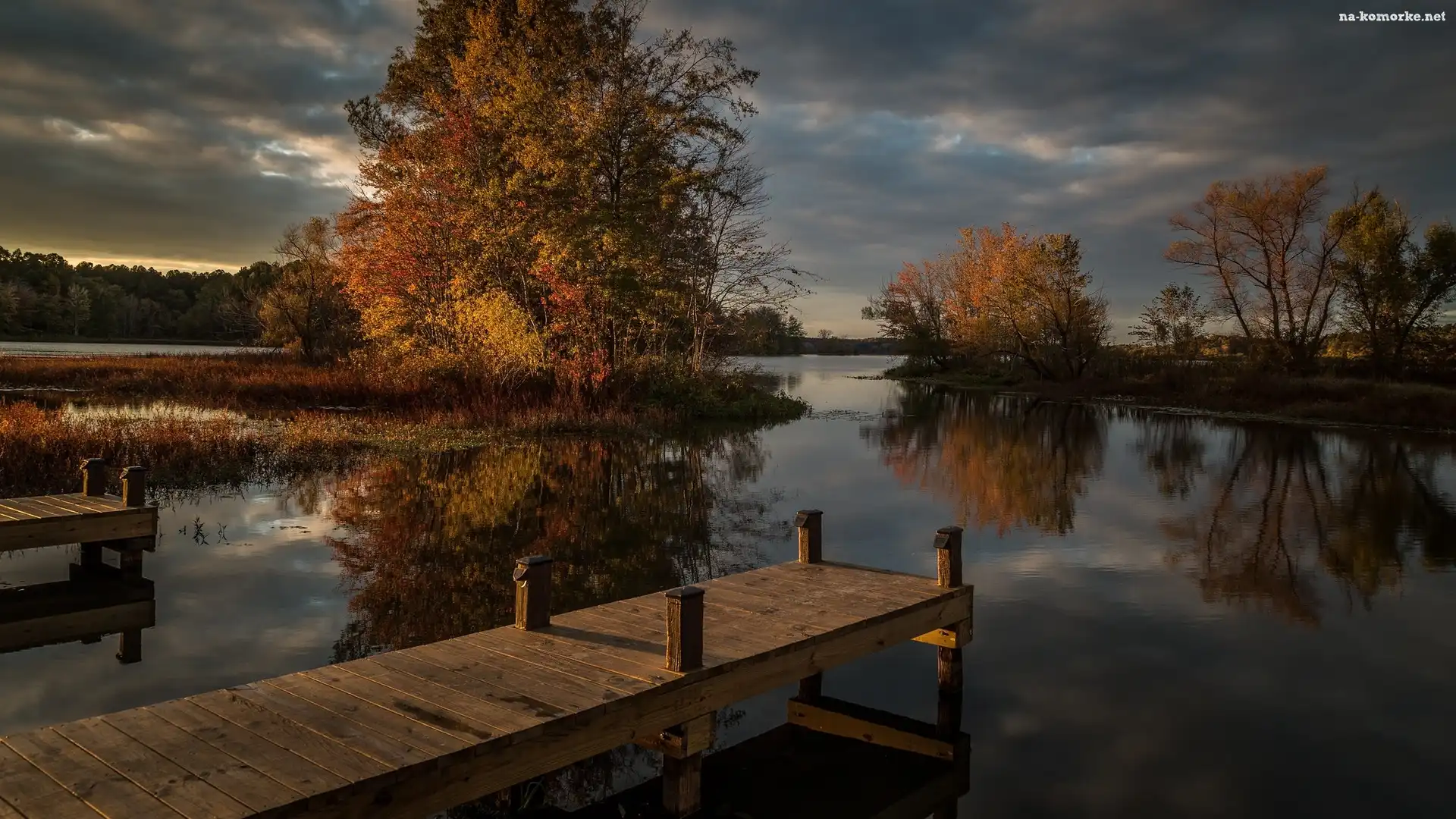 Pomosty, Stan Wirginia, Chmury, Jezioro, Odbicie, Stany Zjednoczone, Drzewa, Lake Chesdin na Komórkę |