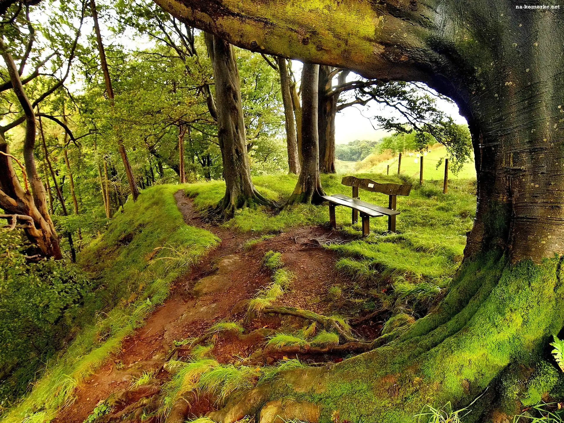 Stare, Ławka, Drzewo, Mech na Komórkę