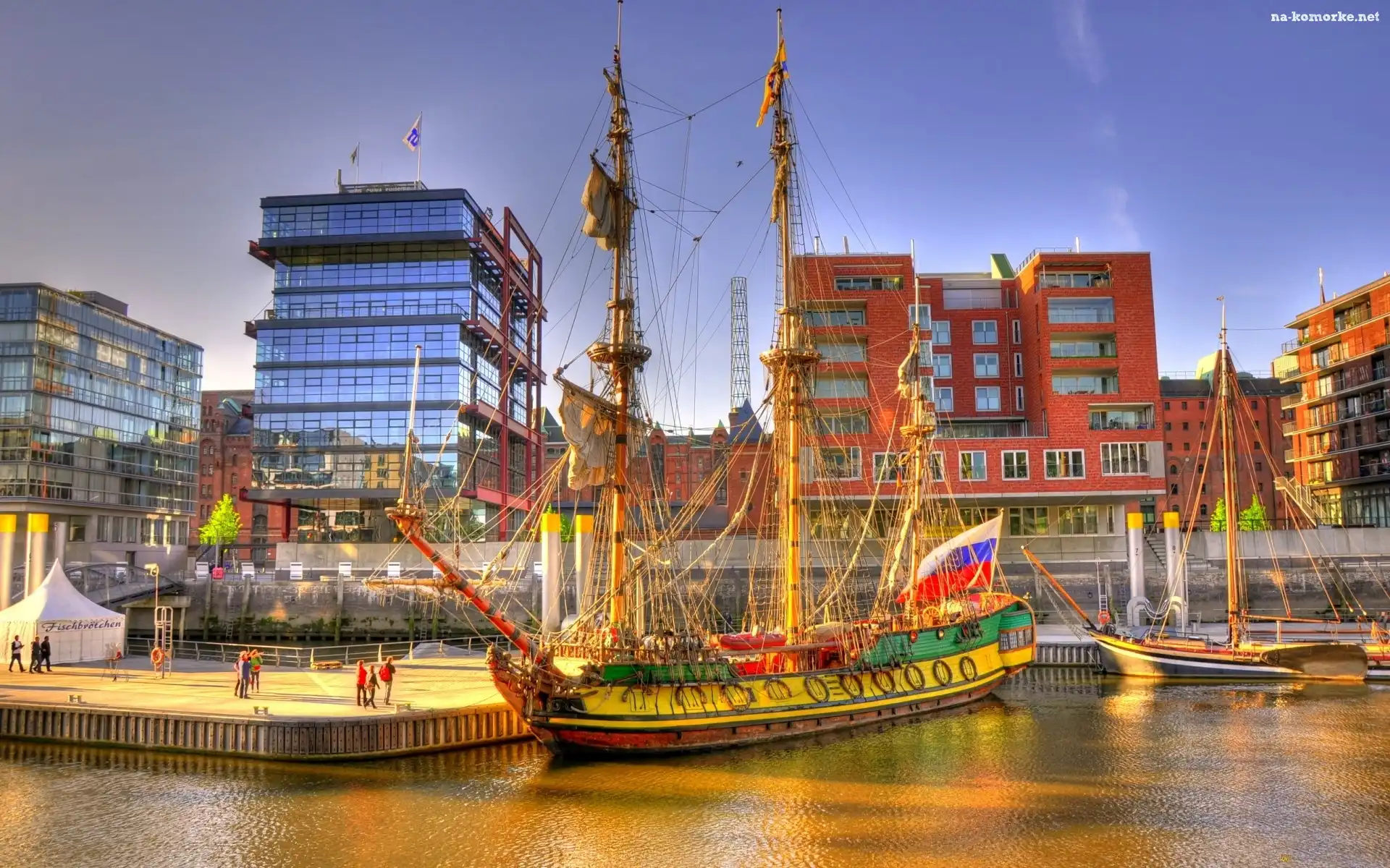Statek, Port, Żaglowy, Budynki na Komórkę
