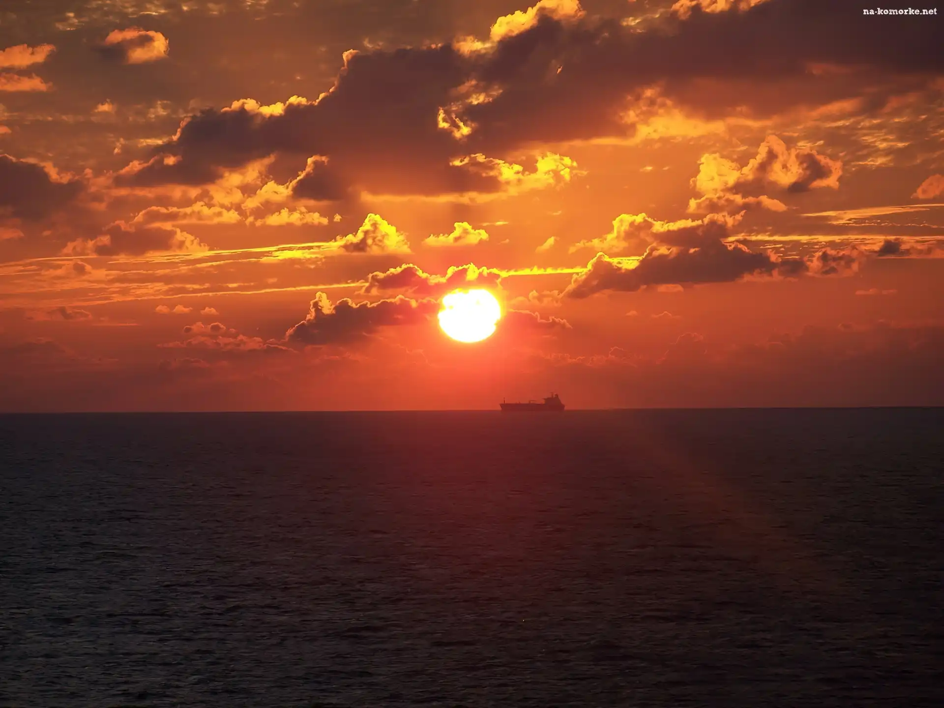 Statek, Zachód, Słońca, Chmury, Morze na Komórkę