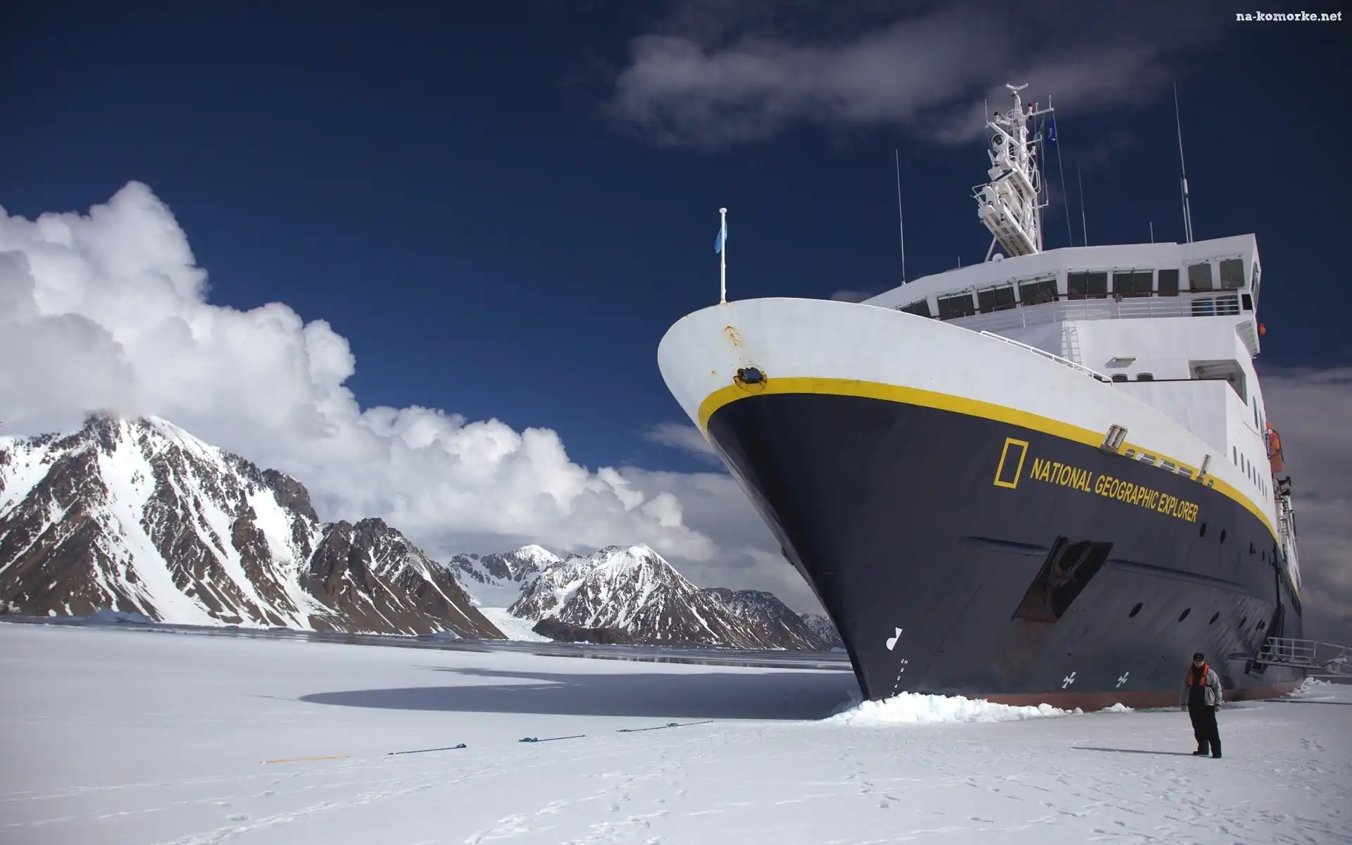 Statek, Chmury, Morze, Góry na Komórkę