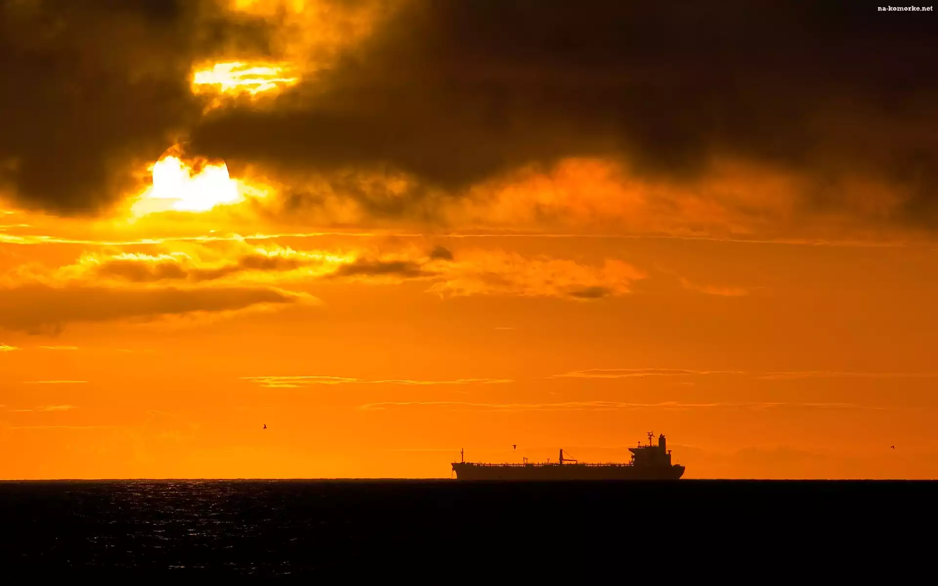 Statek, Niebo, Chmury, Zchod, Slonca na Komórkę