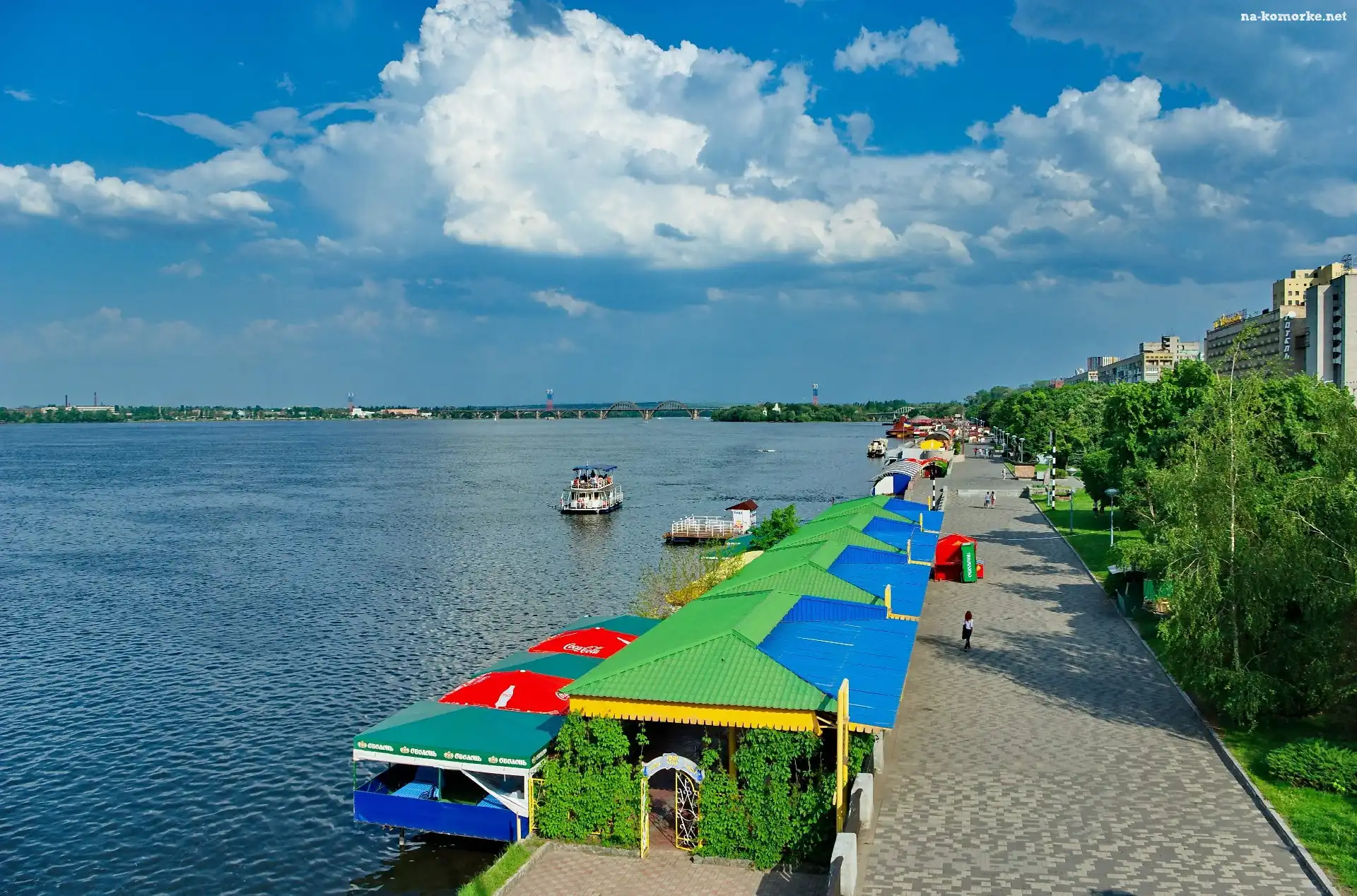 Statki, Namioty, Rzeka, Donieck, Aleja, Niebo na Komórkę