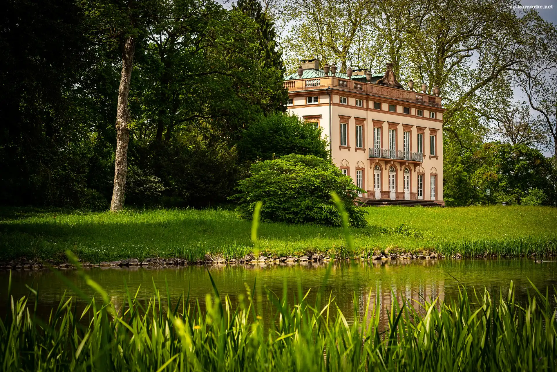 Aschaffenburg, Park, Drzewa, Niemcy, Zamek Schonbusch, Dolne Jezioro na Komórkę