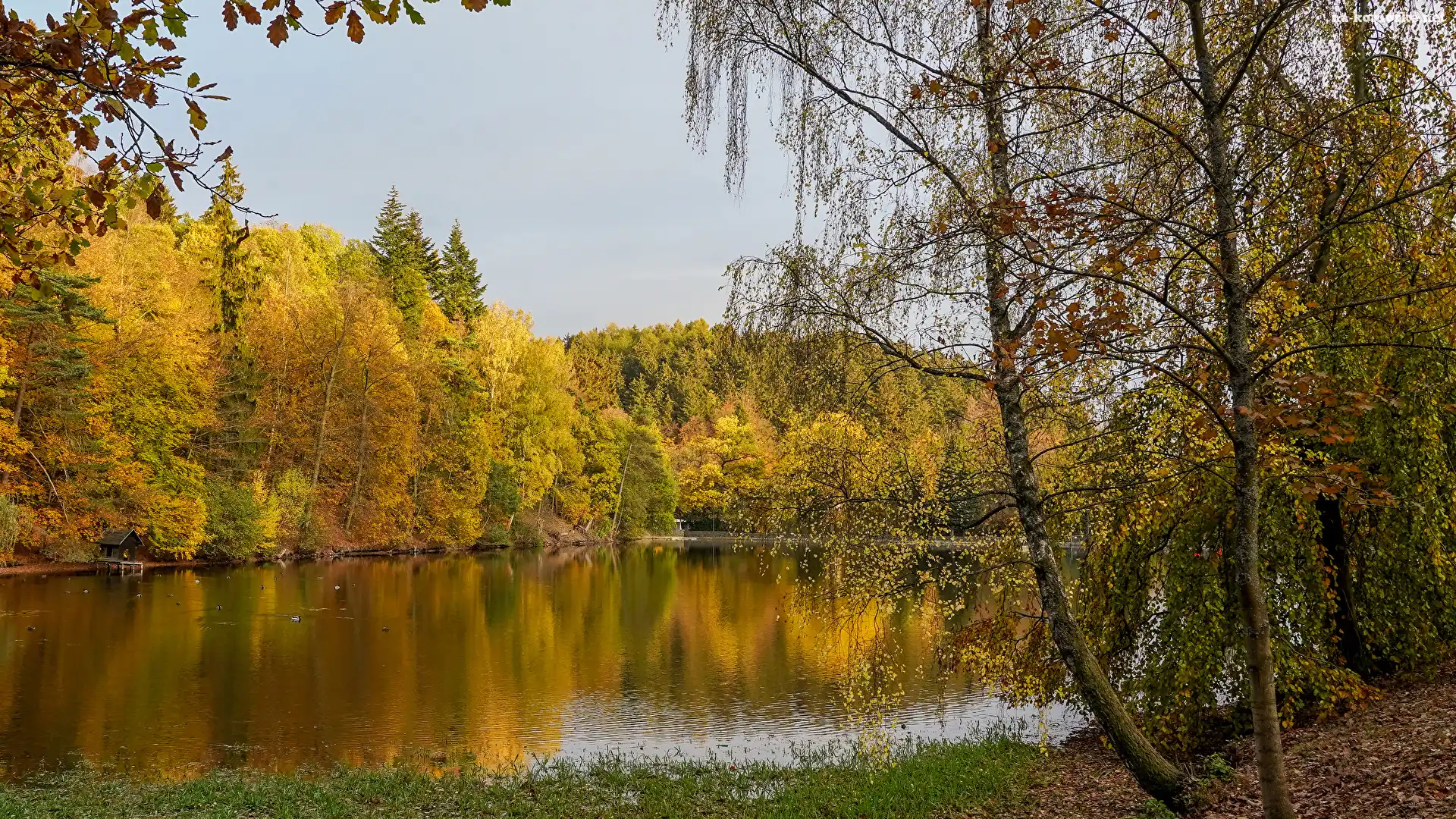 Staw, Jesień, Drzewa, Kaczki na Komórkę