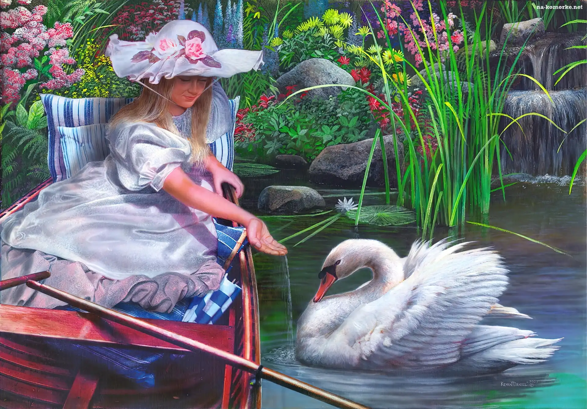 Staw, Łabędź, Dziewczynka, Łódka na Komórkę