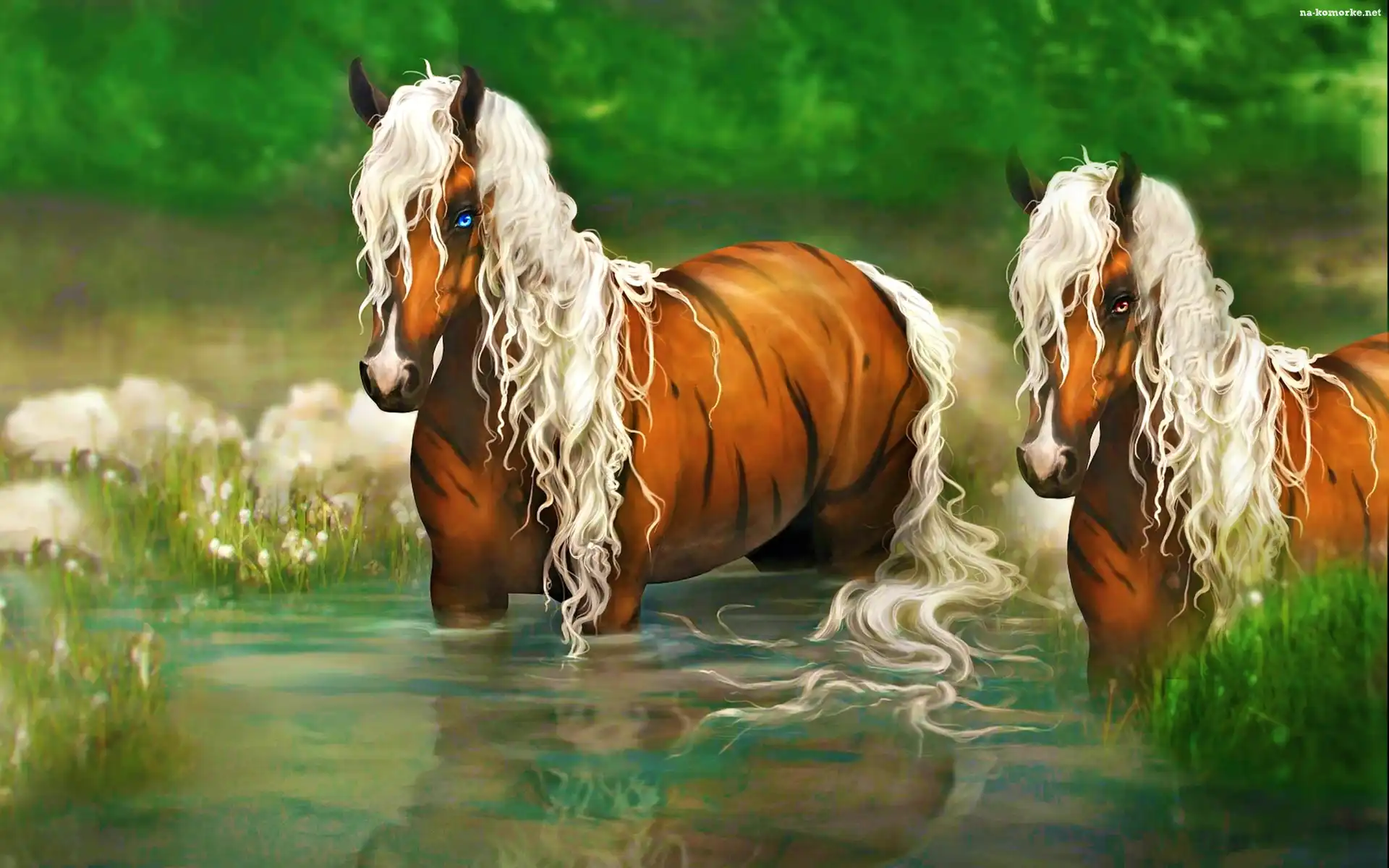 Staw, Dwa, Konie, Jasne, Grzywy na Komórkę