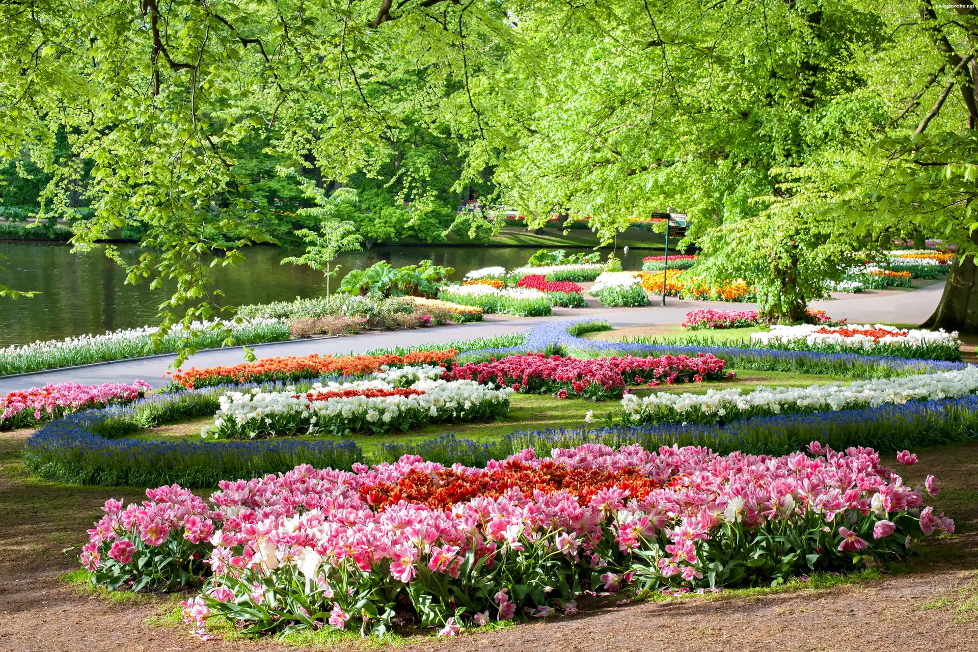 Staw, Keukenhof, Holandia, Wiosna, Park, Kwiaty na Komórkę