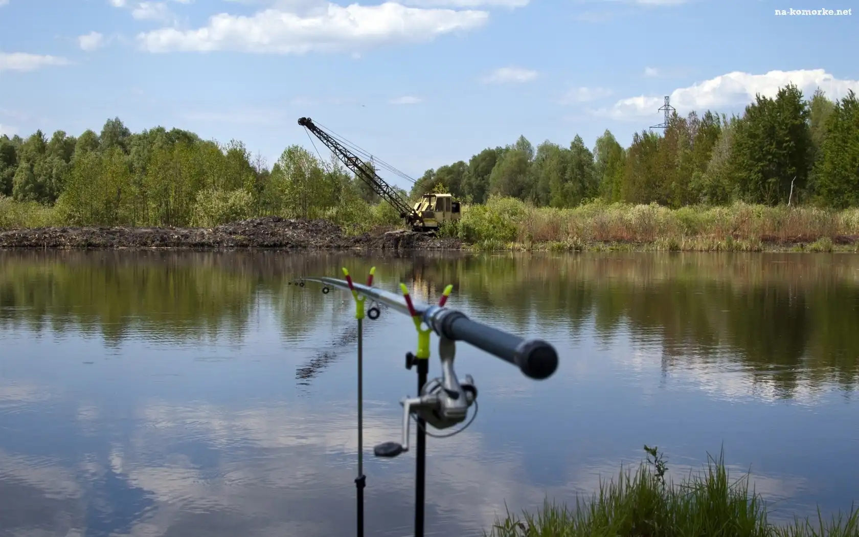 Staw, Drzewa, Wędka, Koparka na Komórkę
