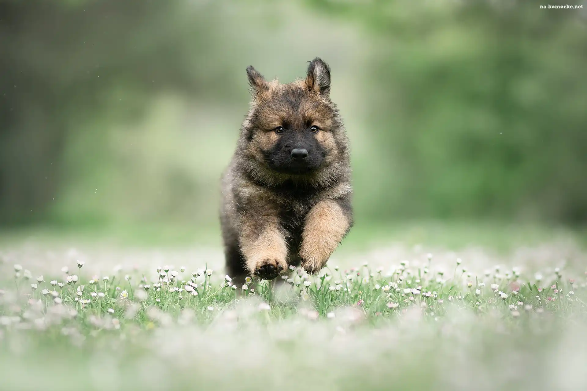 Stokrotki, Pies, Szczeniak, Owczarek niemiecki, Kwiaty na Komórkę