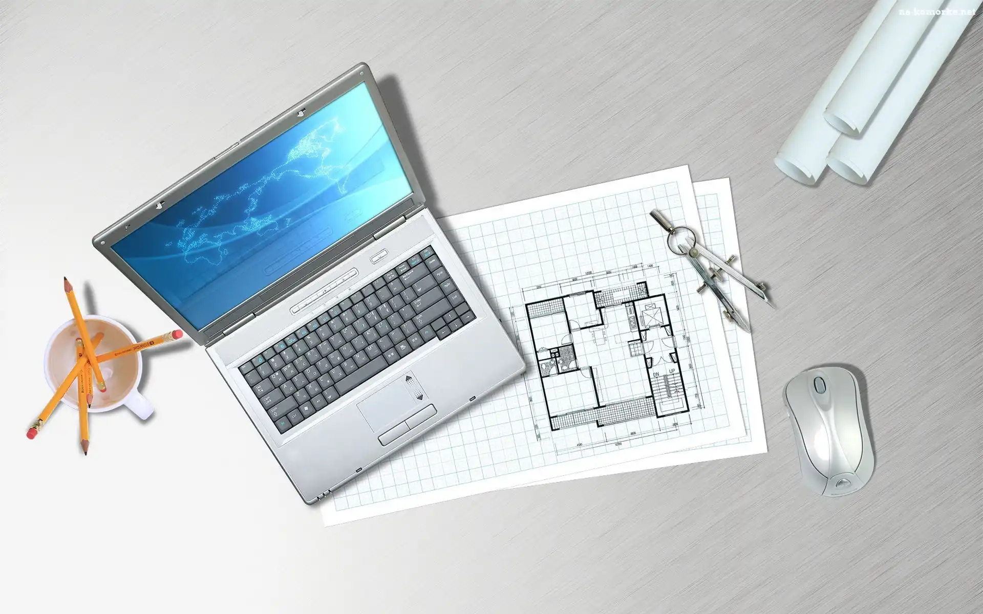 Stół, Projekt, Architekta, Notebook na Komórkę