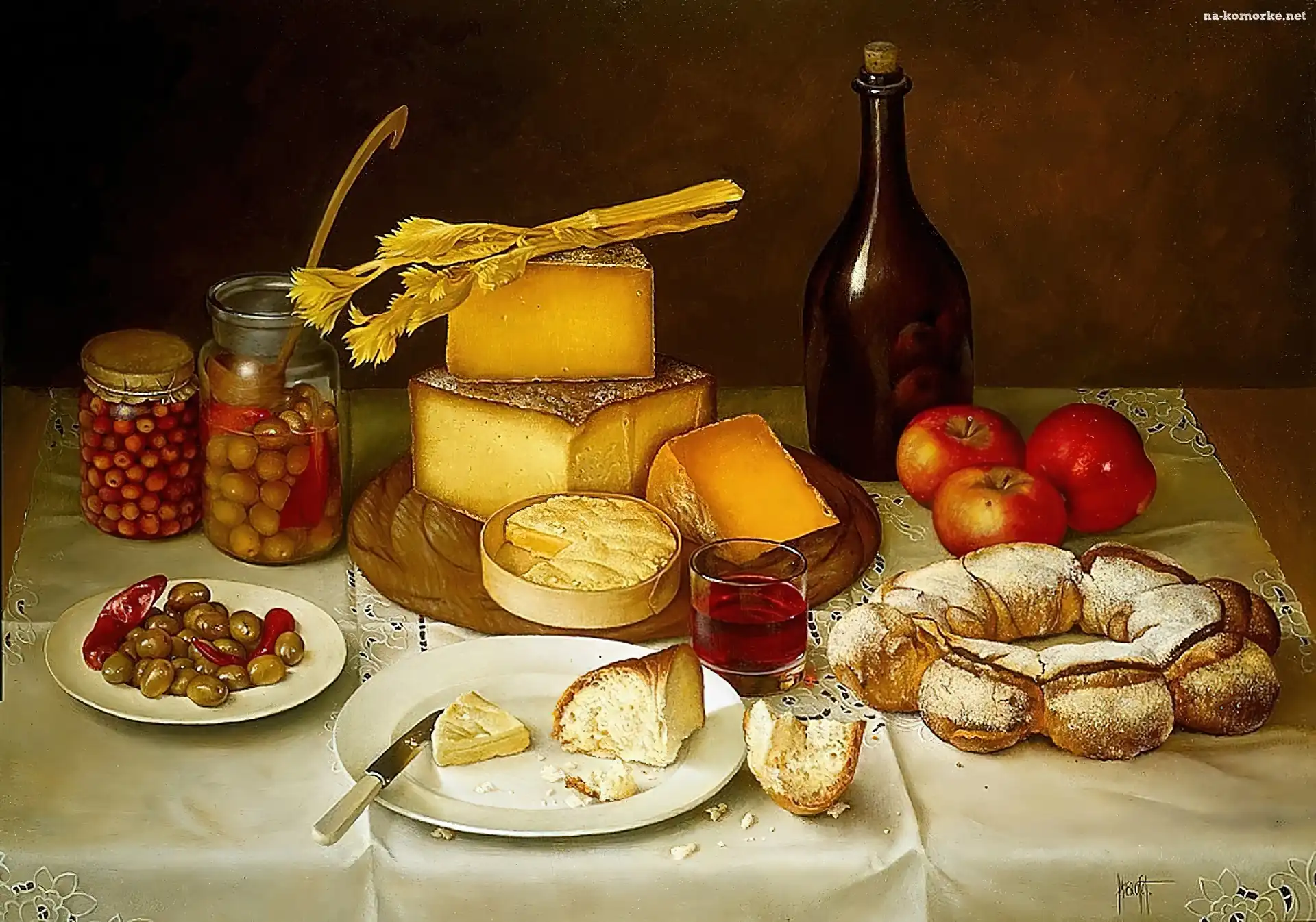 Stół, Ser, Wino, Ciasta, Owoce na Komórkę