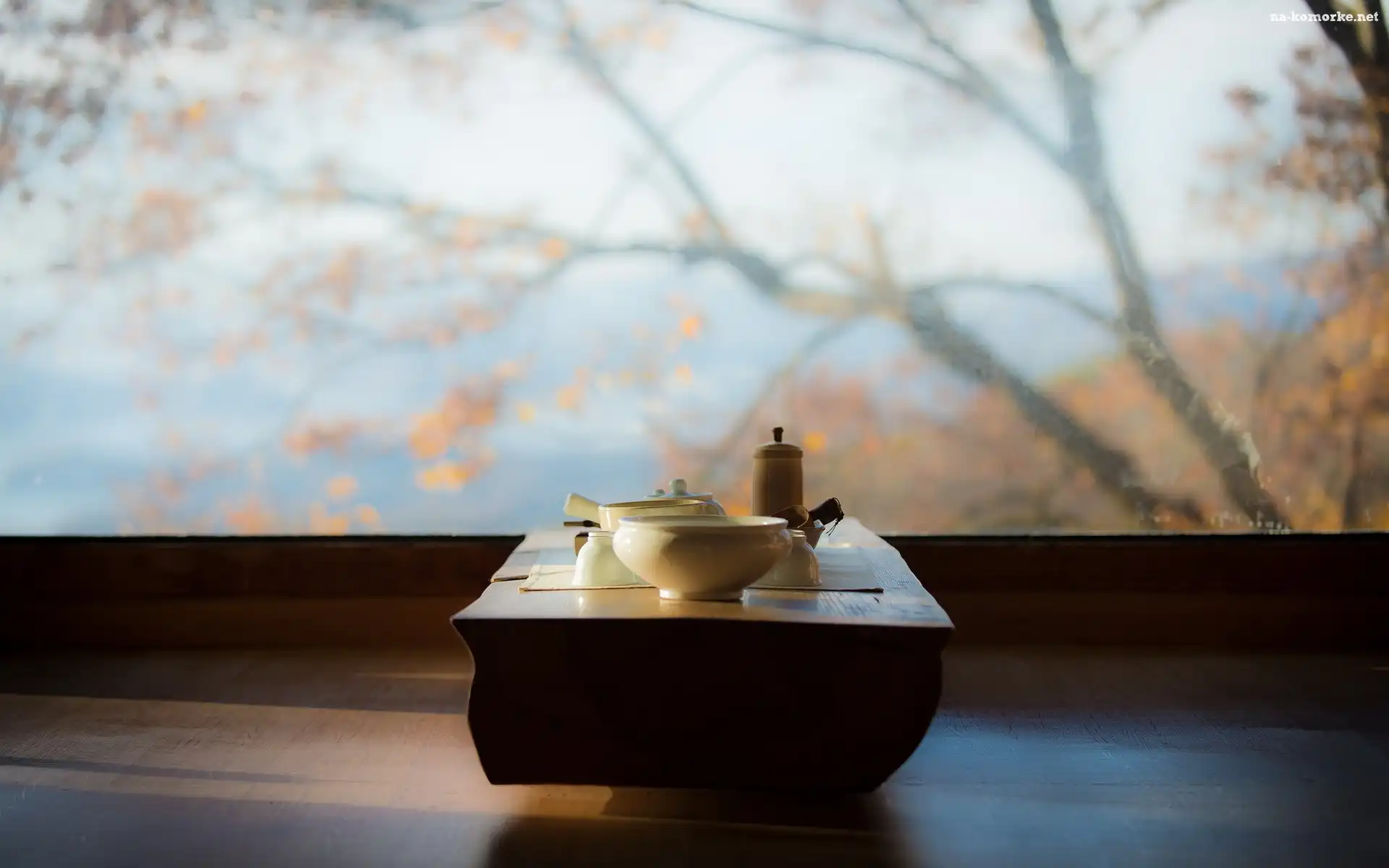 Stół, Widok, Naczynia, Okno na Komórkę