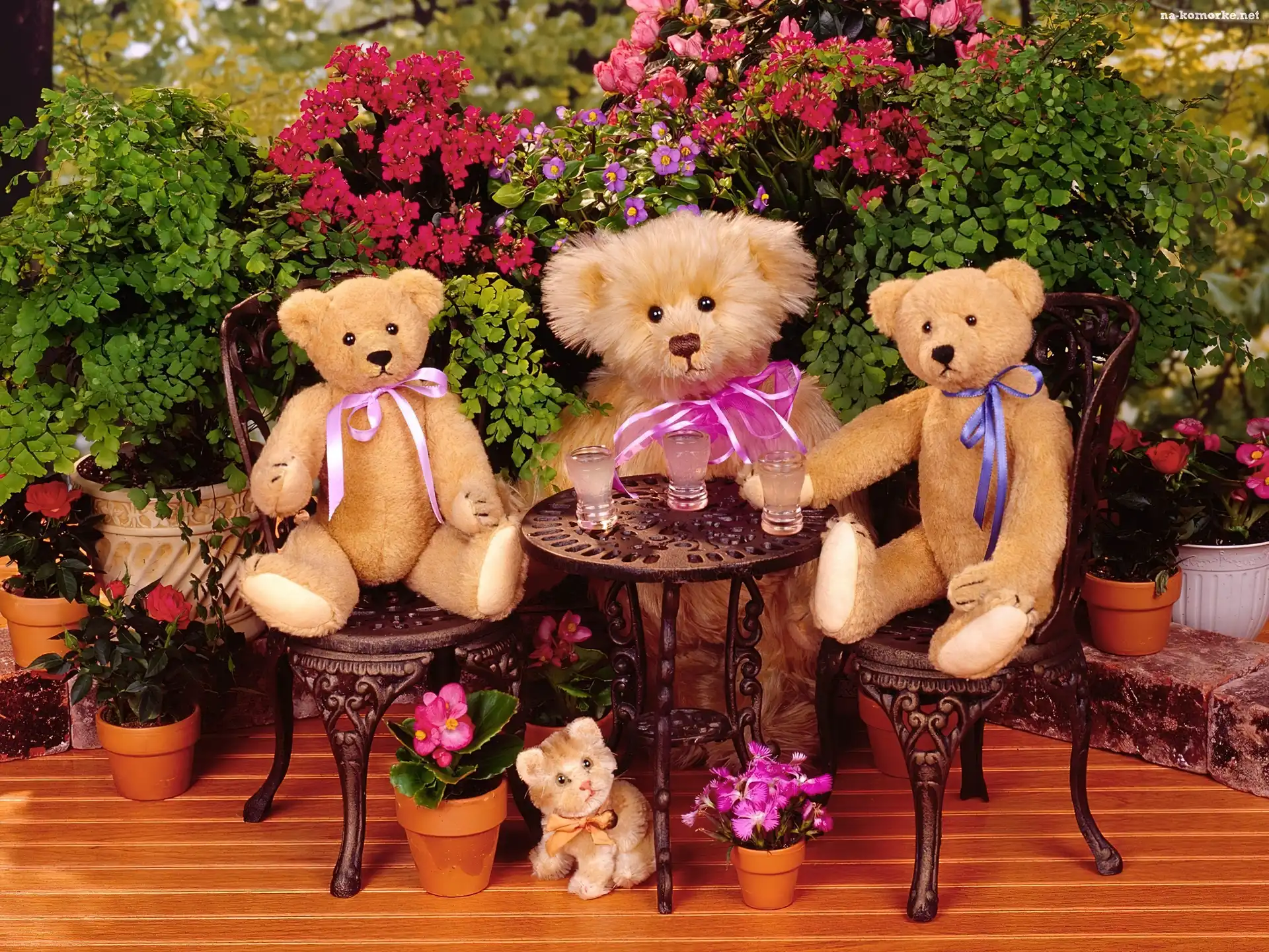 Misie, Stolik, Kwiaty na Komórkę