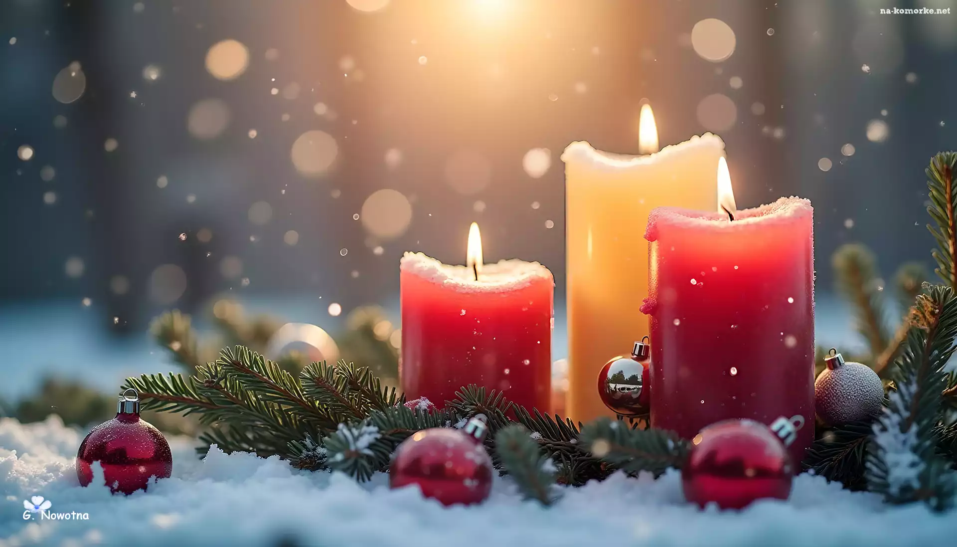 Bombki, Śnieg, Boże Narodzenie, Grafika, Świece, Gałązki, Stroik na Komórkę