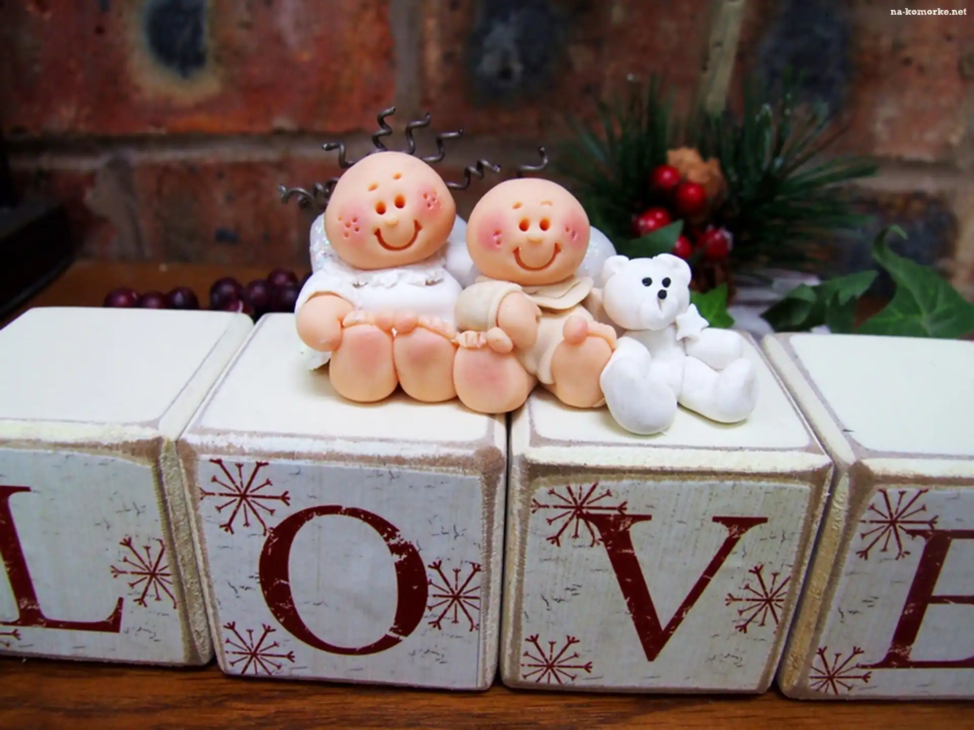 Stroik, Napis, Kostki, Lale, Miś na Komórkę