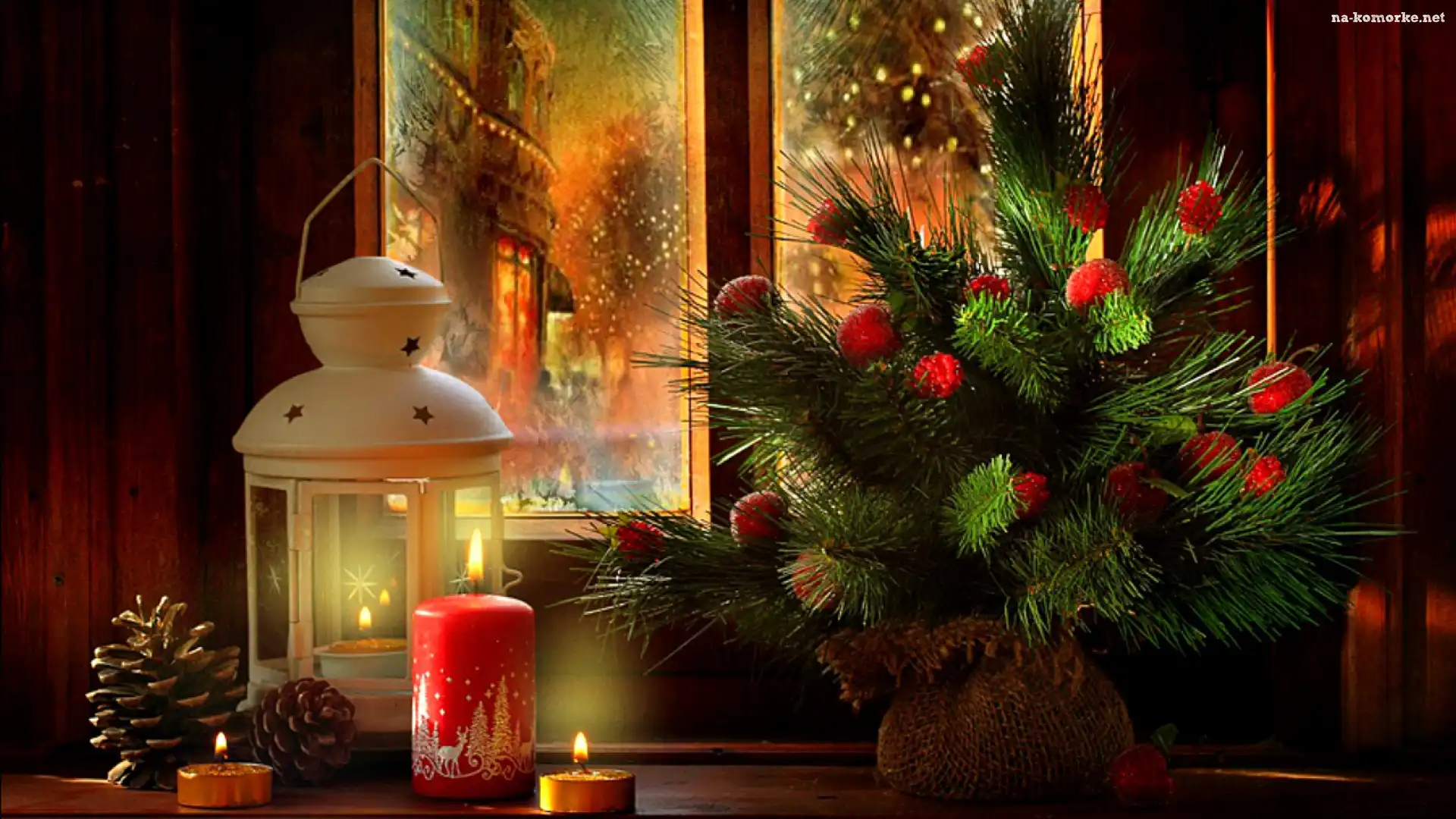 Stroik, Kompozycja, Lampion, Świeca, Okno, Boże Narodzenie, Świąteczne na Komórkę