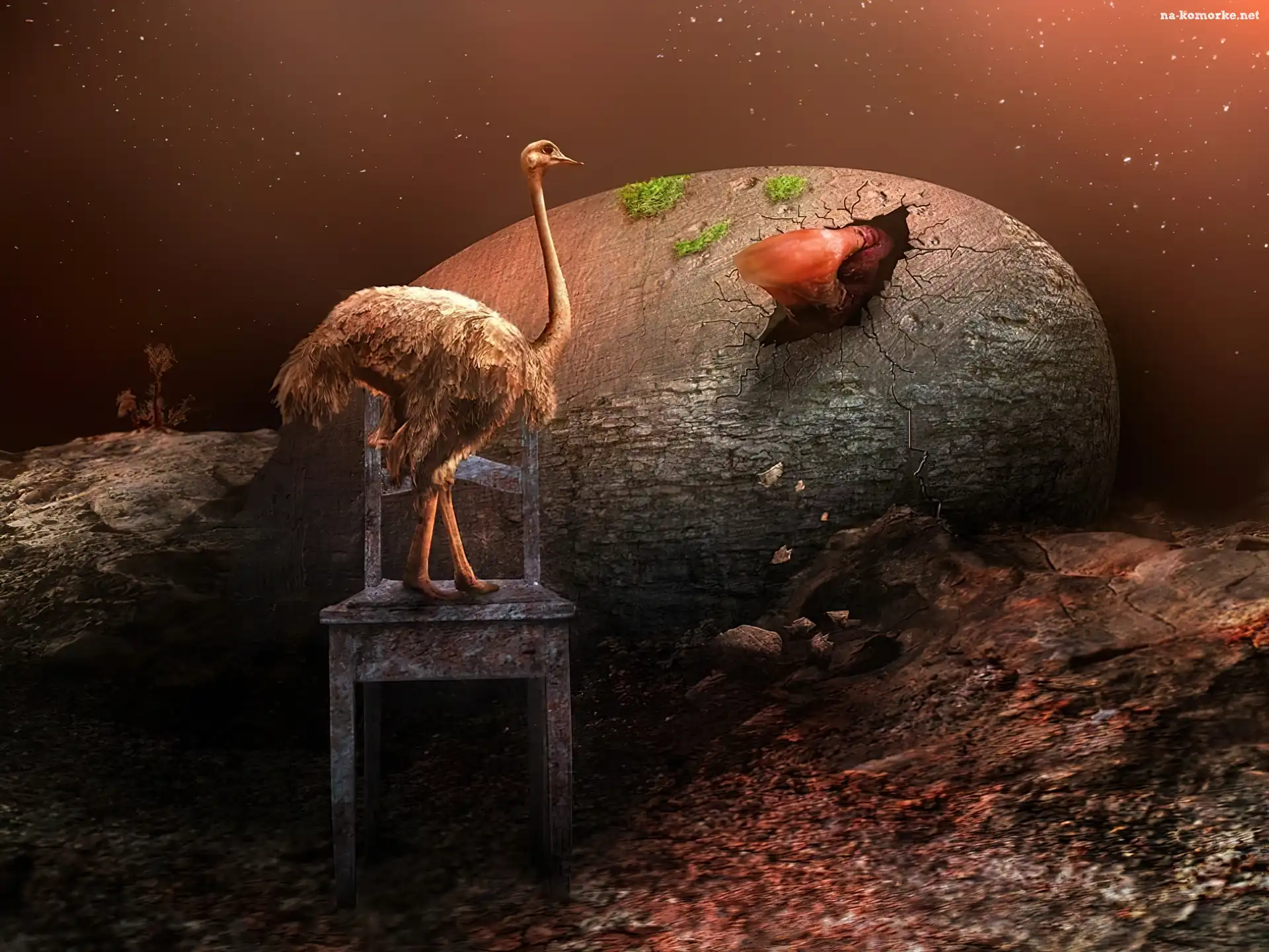 Struś, Jajo, Krzesło, Strusie na Komórkę
