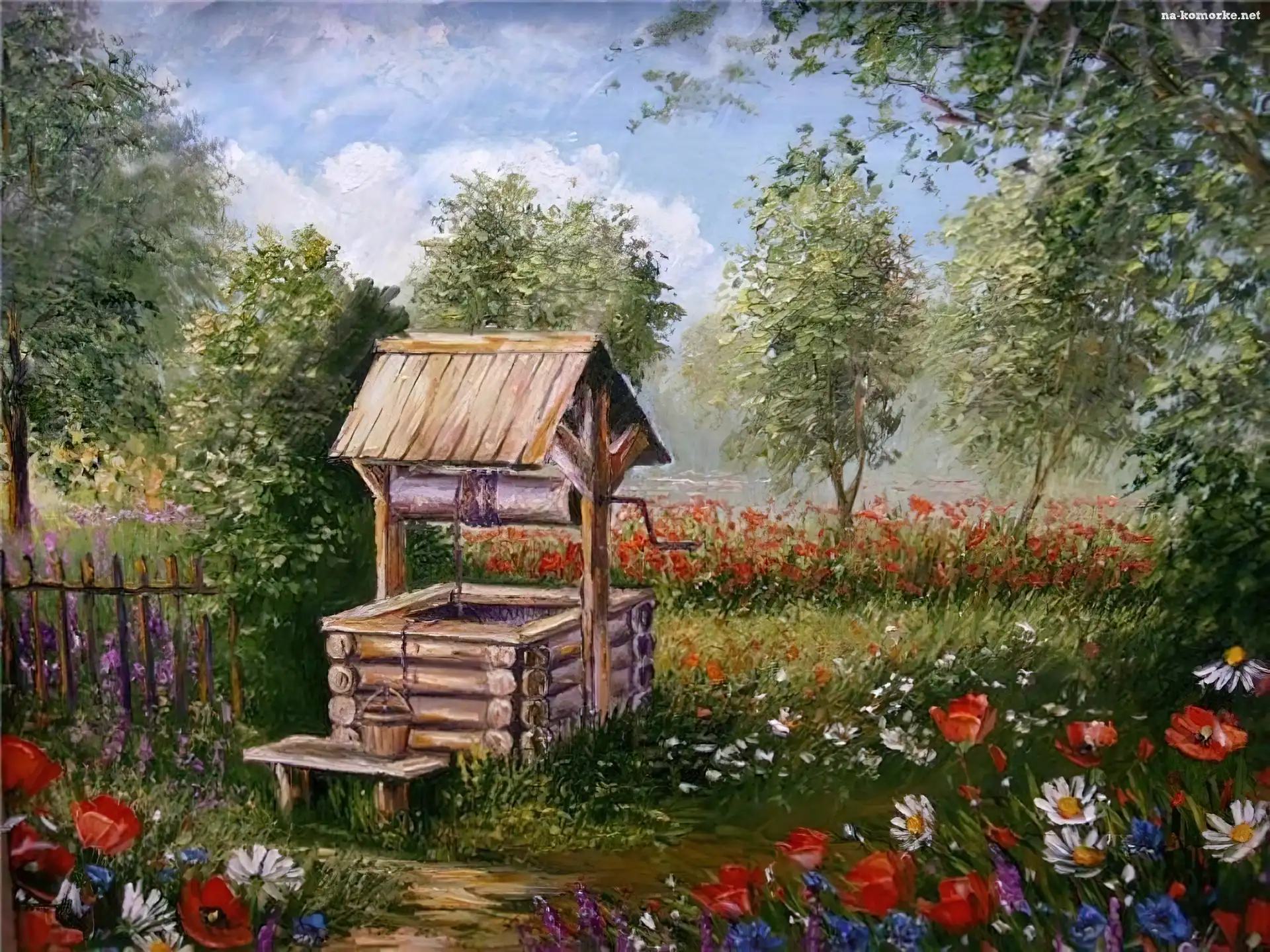 Ogród, Studnia, Kwiaty na Komórkę