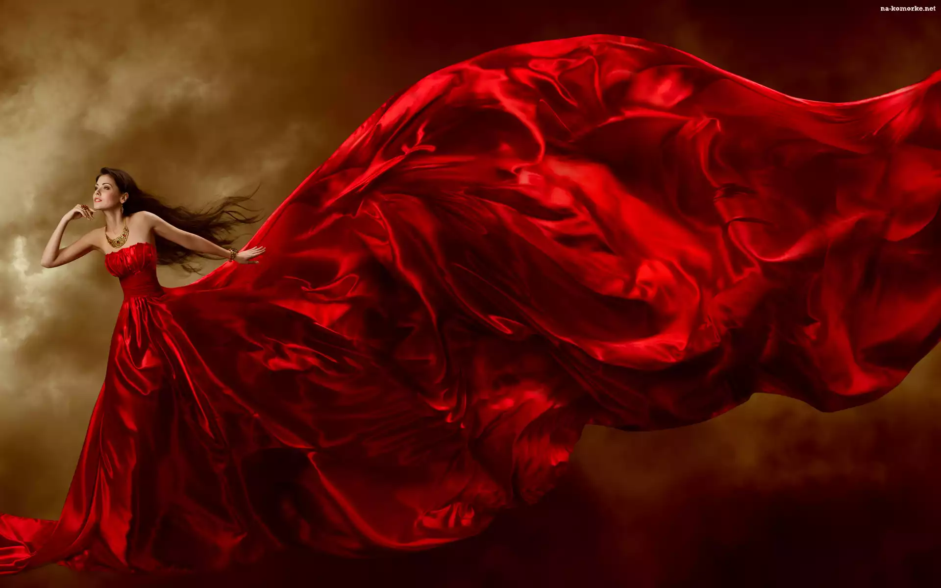Brunetka, Styl, Czerwona, Moda, Suknia na Komórkę