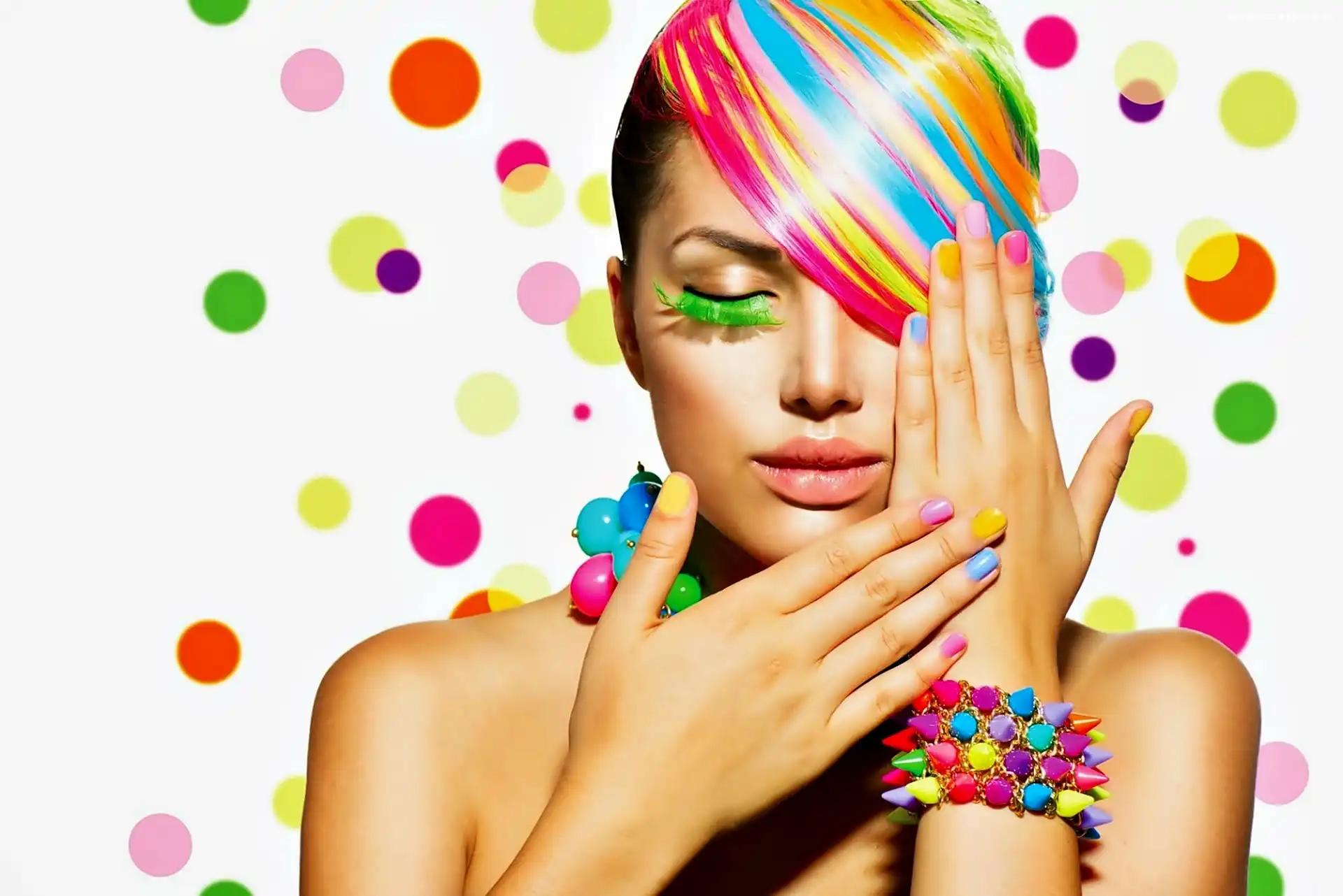 Kobieta, Kolorowe, Włosy na Komórkę