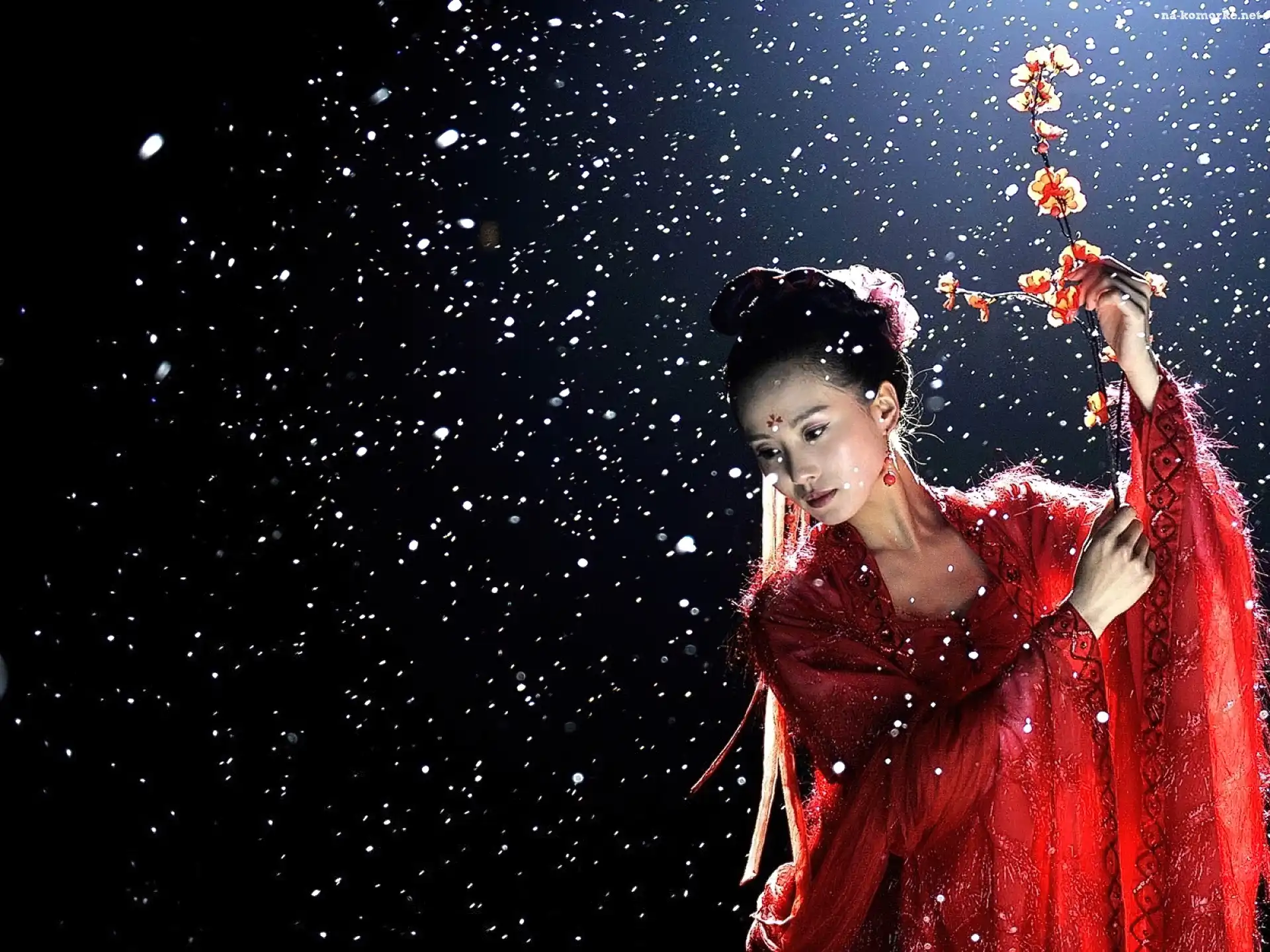 Sukienka, Brunetka, Gałązka, Kwiat, Czerwona na Komórkę