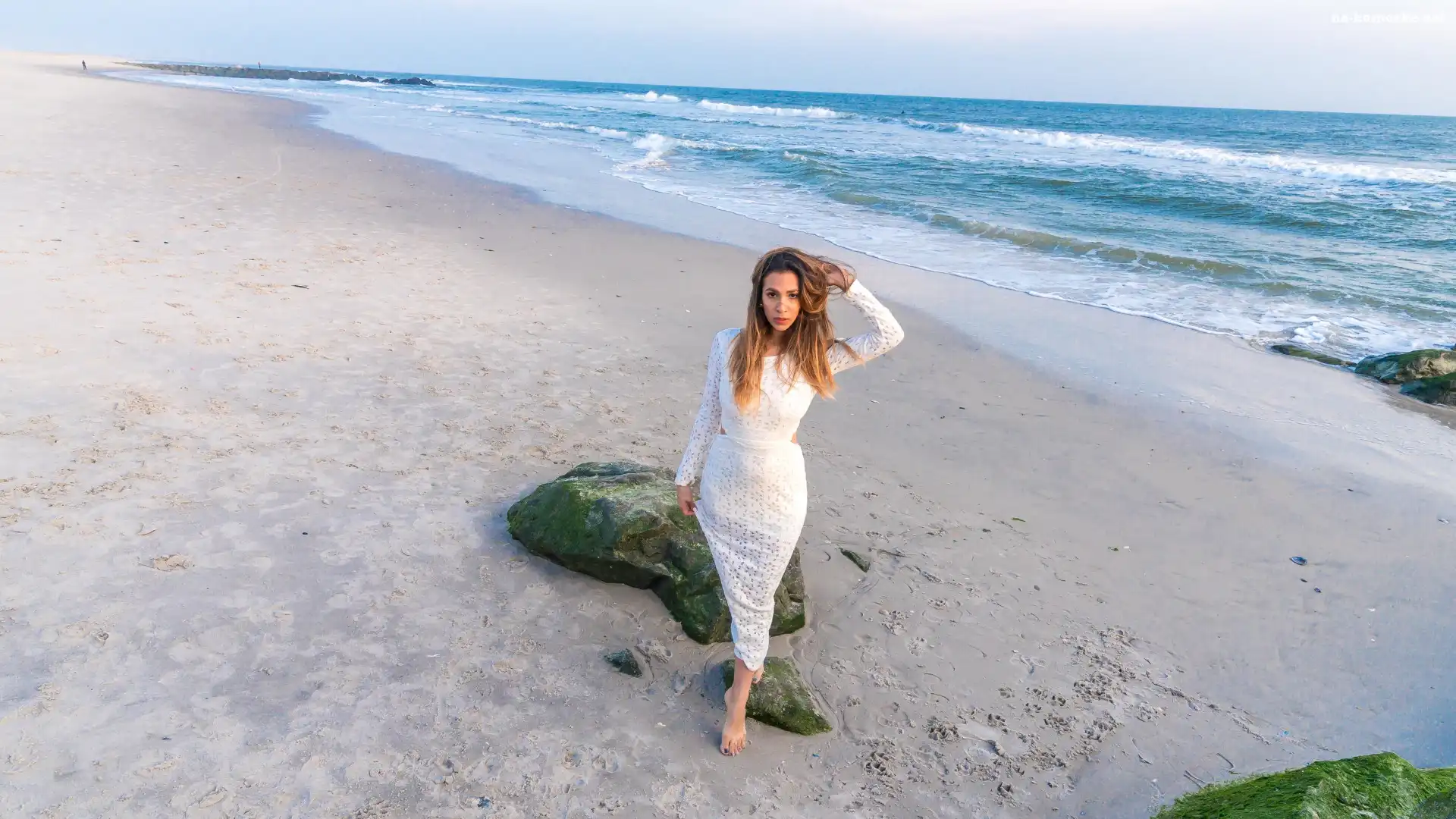 Kobieta, Sukienka, Plaża, Biała, Morze na Komórkę