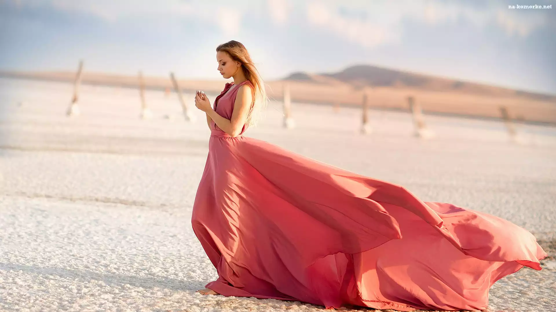 Kobieta, Suknia, Plaża, Długa, Piasek na Komórkę