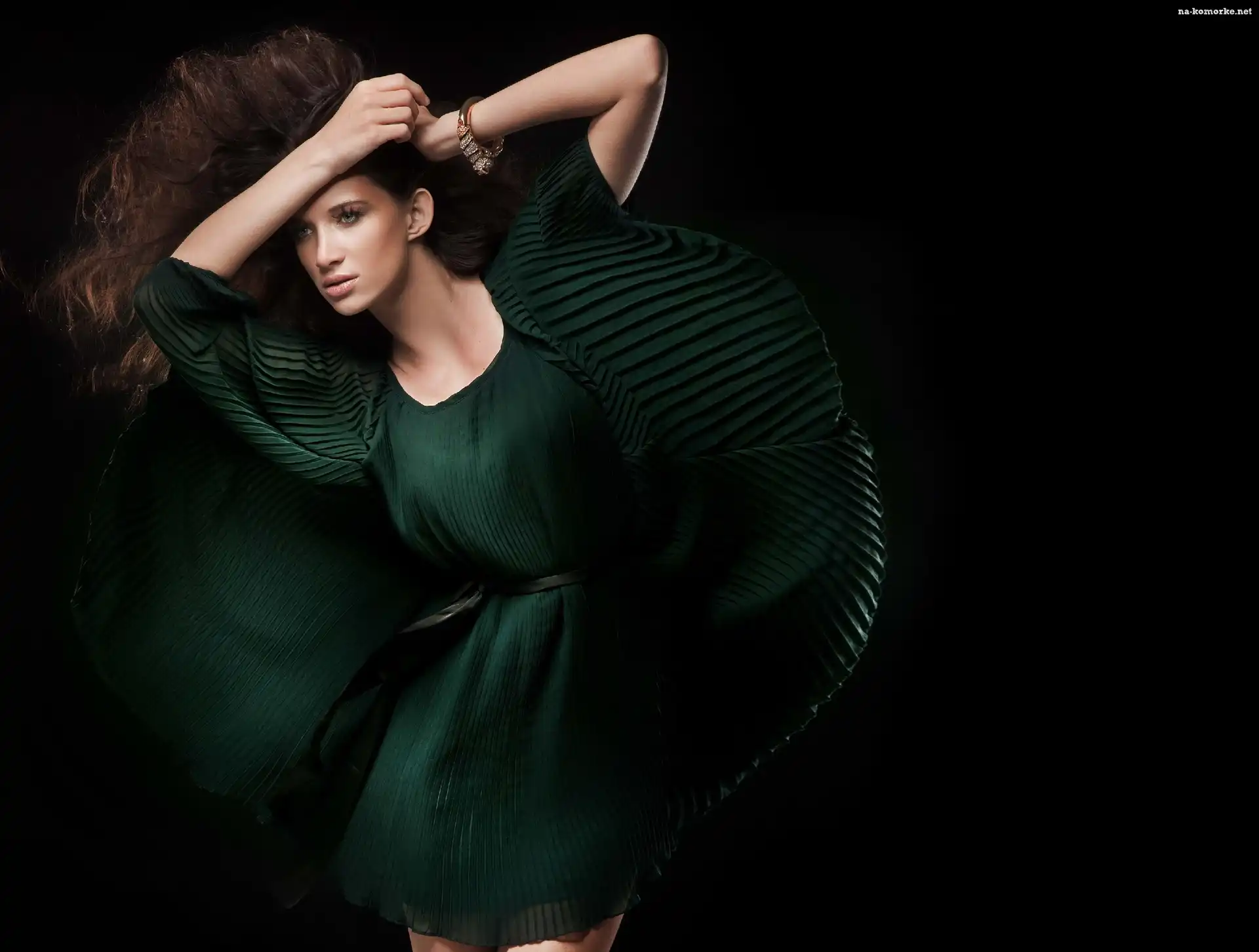 Suknia, Kobieta, Rozwiane, Włosy, Zielona na Komórkę