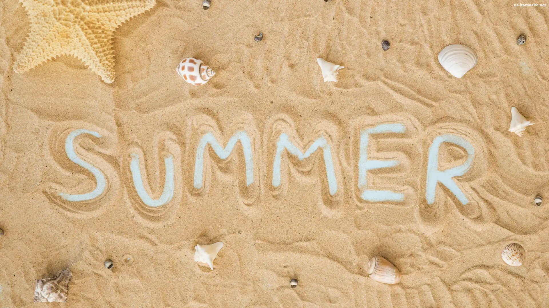 Plaża, Summer, Muszelki, Lato, Piasek, Wakacje, Napis na Komórkę