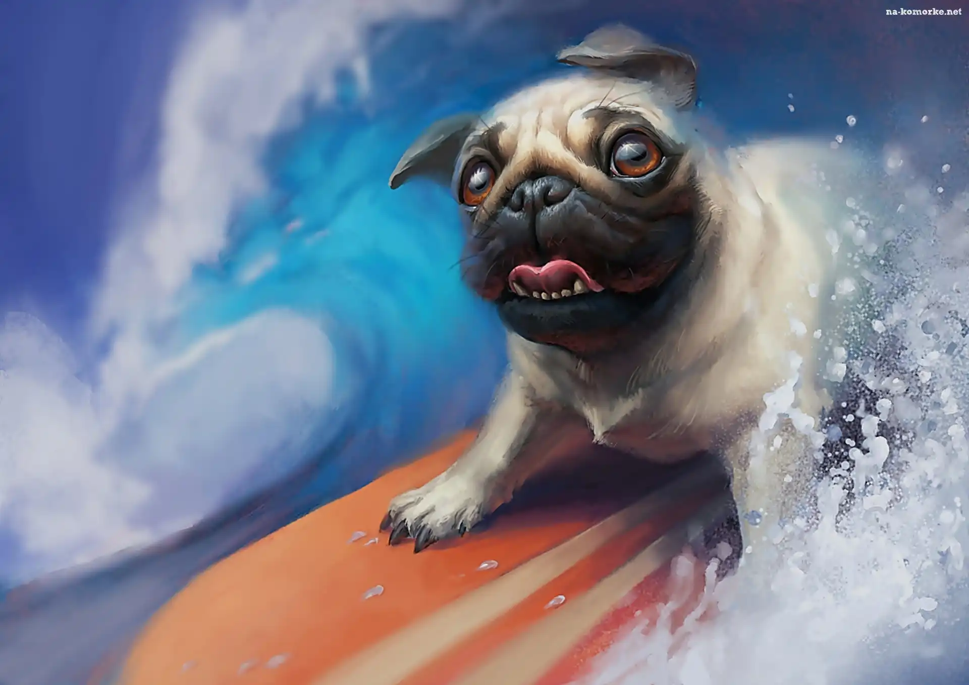 Surfing, Pies, Śmieszne, Grafika, Deska, Woda na Komórkę